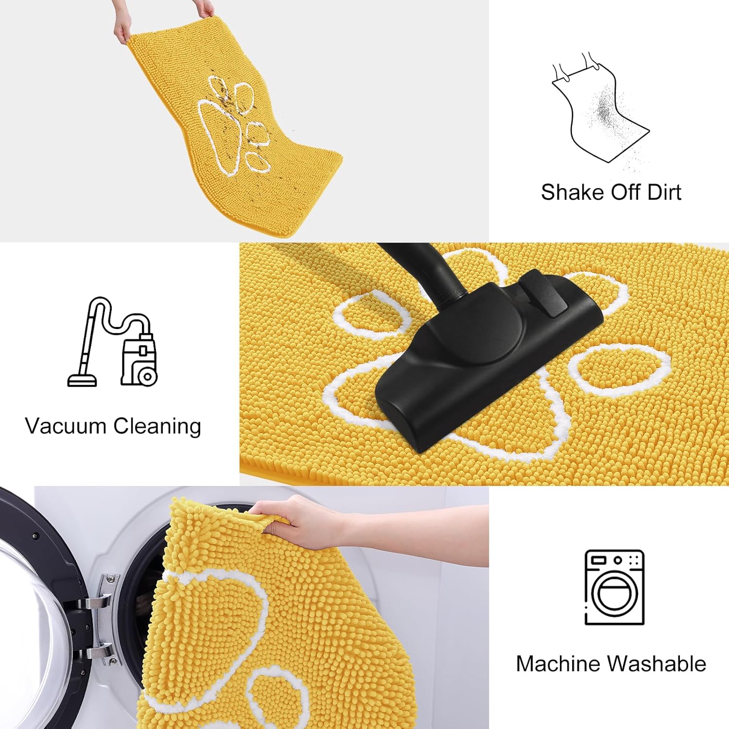 Smiry Dog Door Mat for Muddy Paws, Absorbent Dirt Trapper Non Slip Quick Dry Washable Chenille Mat for Mud Dogs, Entry Rug for Indoor and Outdoor (30x20 Inches, Yellow)