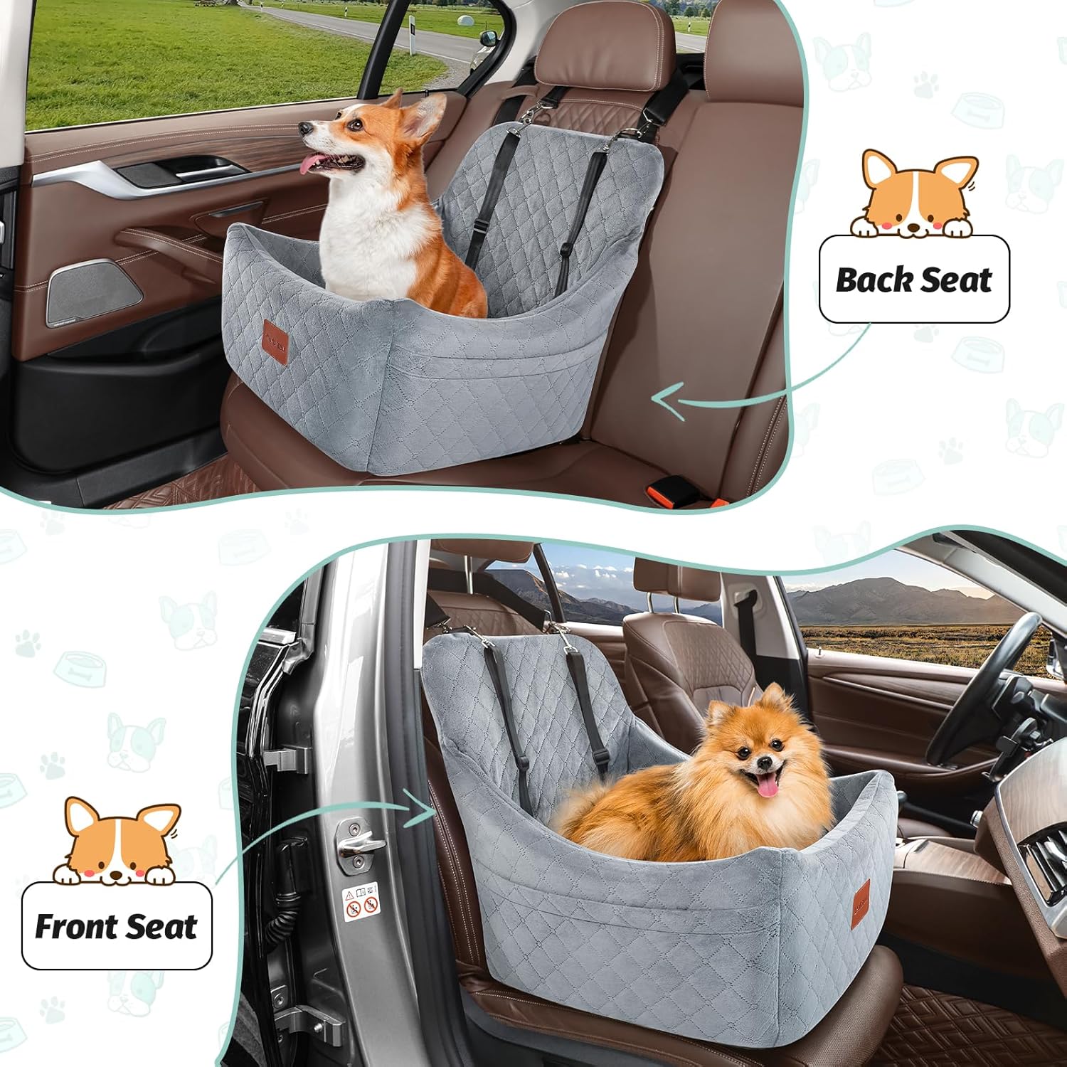 Dog Car Seat for Medium Dogs Up to 35lbs,Fully Detachable and Washable,Easy to Install with Adjustable Straps,Anti-Slip Bottom Travel Car Bed for Pets,Two Side Pockets(Grey,Medium)