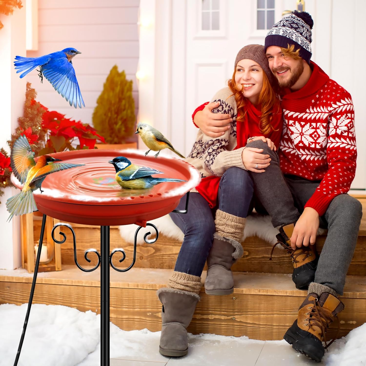 - 【Great Bird Lover Gifts】Our bird bath water heater can be a gorgeous addition for your yard, lawn, garden, patio, a great gift for your friend or family member, also a special gifts for wild bird watchers and nature lovers; Spend your free time watching birds playing, drinking or bathing in your garden, it will brighten up your boring and long winter days