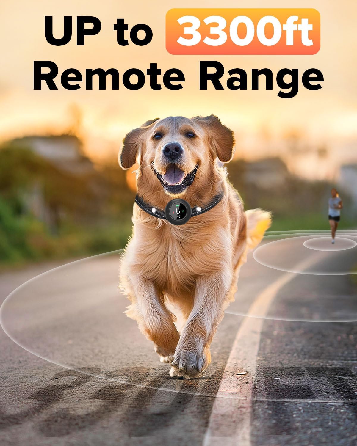 - 【3300FT Remote Range & IP67 Waterproof】With an impressive 3300FT range, this collar allows your dog the freedom to roam while staying within reach. Made of durable nylon material, the collar is skin-friendly for your dog. The IP67 waterproof rating ensures durability and reliability in any weather condition, allowing your dog to enjoy training sessions even in the rain or while swimming.