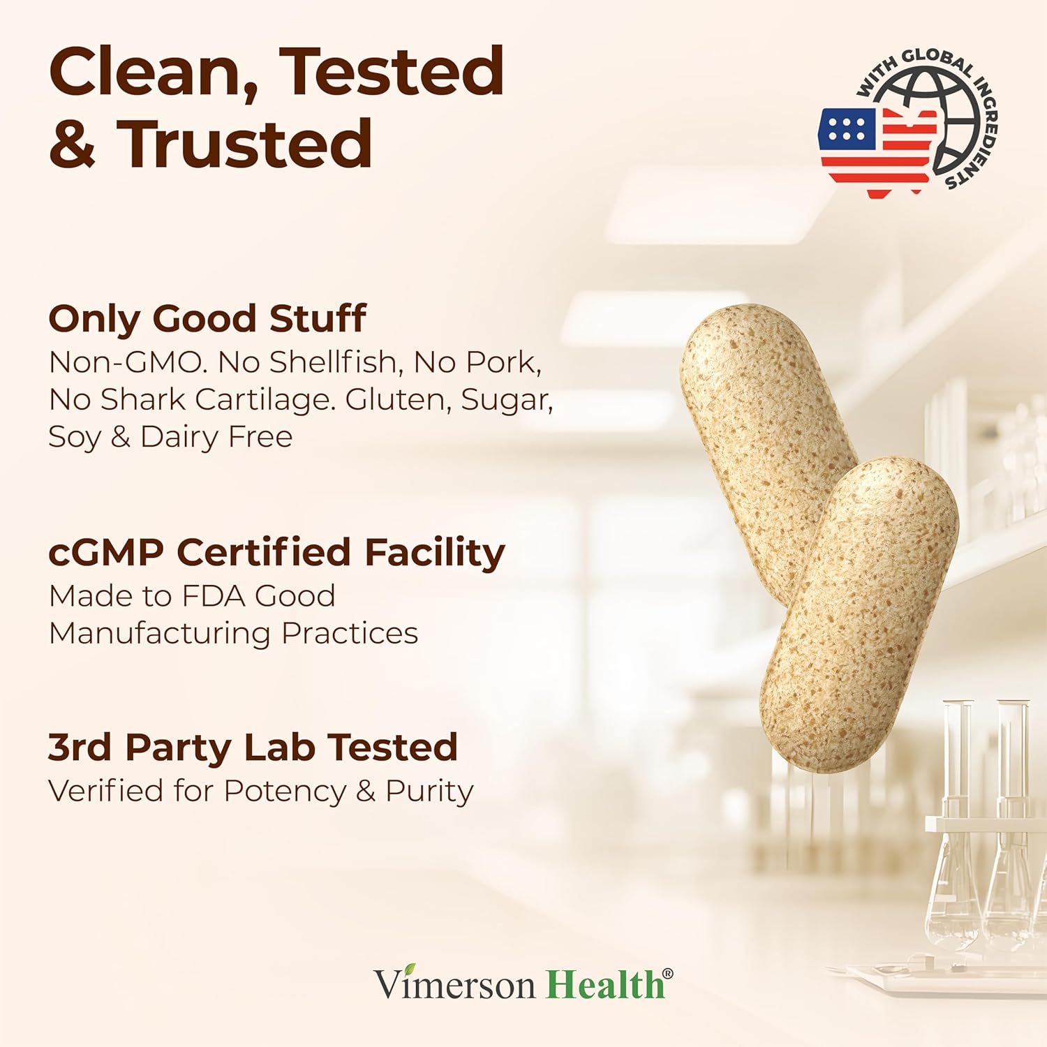 - PREMIUM CHONDROITIN & GLUCOSAMINE NUTRITIONAL SUPPLEMENTS - Made in the USA in a cGMP & NSF-certified facility with globally-sourced ingredients. Third-party tested for purity and potency. Easy-to-swallow tablets with no aftertaste. Non-GMO, gluten-free, dairy-free, soy-free, and shellfish-free. No pork. No shark cartilage. Trusted by health-conscious individuals seeking quality, efficacy, and affordability.*