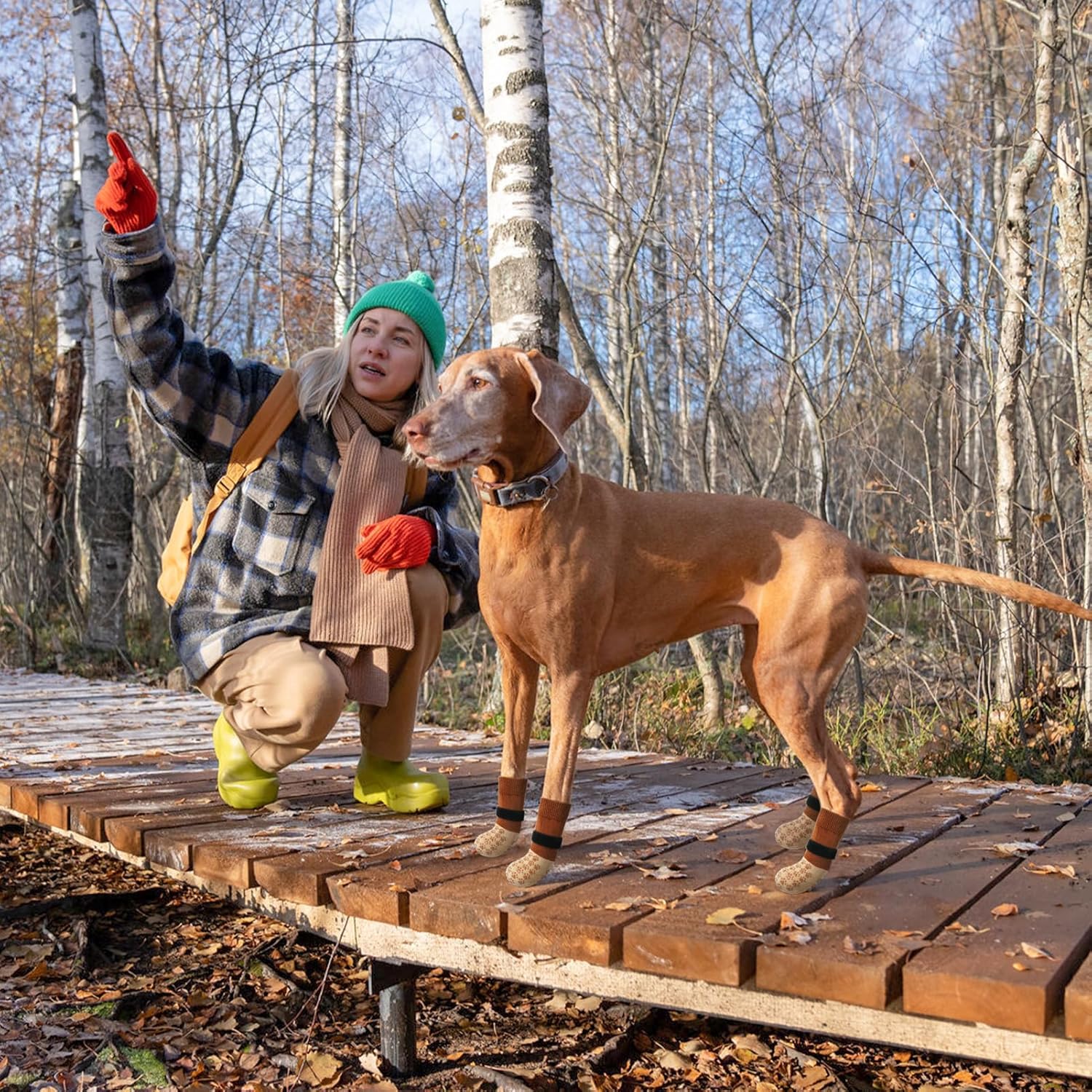 - PREMIUM QUALITY FABRIC: The non slip dog socks made from stretchy and comfortable breathable knitted fabric, soft and lightweight, easier for your dog to wear; the bottom is designed with an extra thick grip for durability, which effectively protects your furry pet's paws from hot and cold sidewalks and rough outdoor surfaces