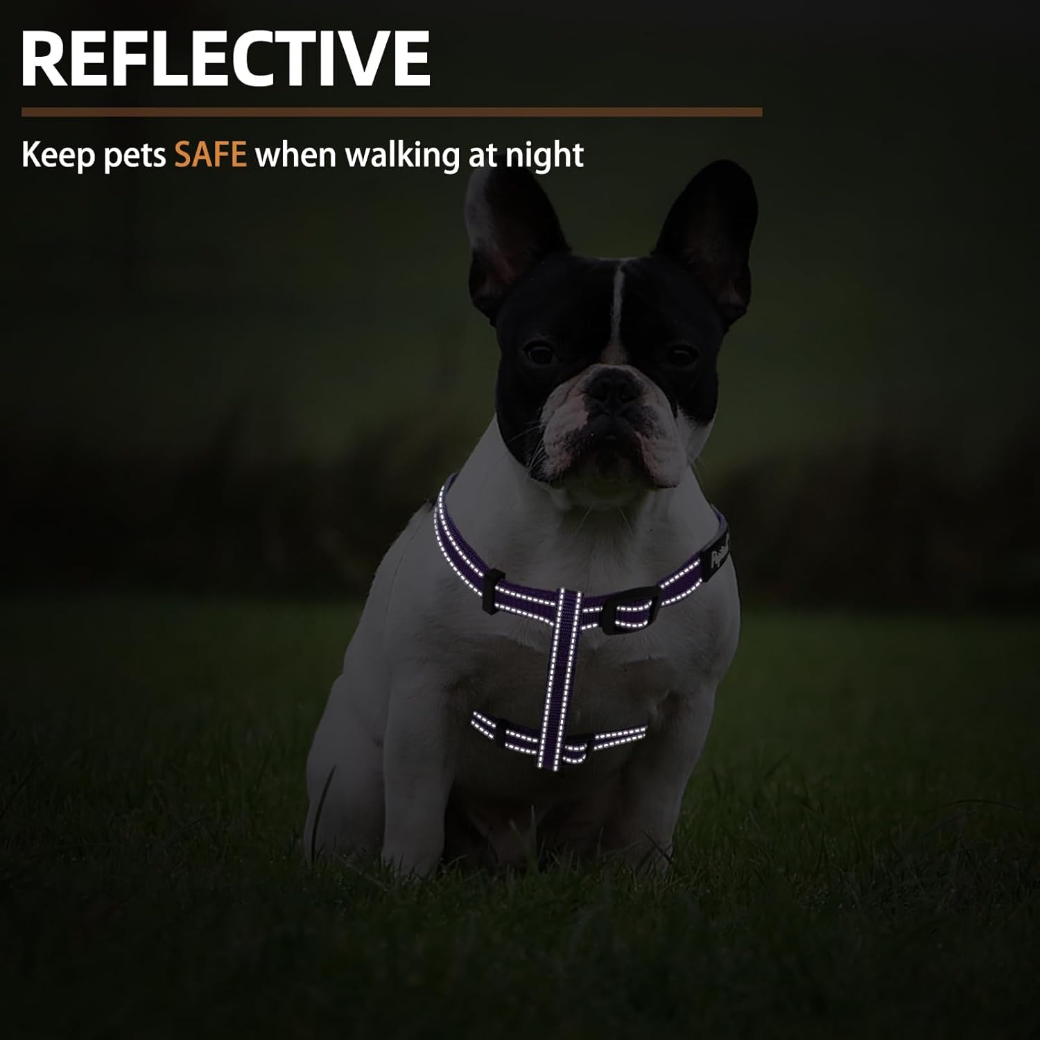 PUPTECK No Pull Dog Harness Soft Adjustable Basic Nylon Step in Puppy Vest Outdoor Walking with ID Tag, Reflecive Purple, S