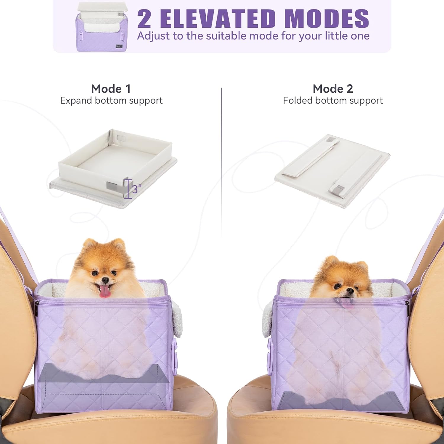 PETSFIT Dog Car Seats for Small Dogs, Patent Safe Buckles Cat Car Seat, Car Seat for Dogs with Safety Belt, Suitable for Small Pets Up to 25lbs (Lavender Purple)