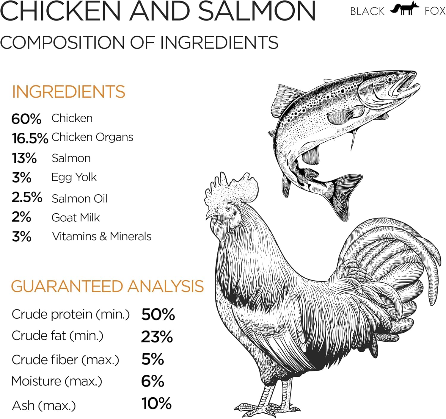 BLACK FOX Raw Freeze Dried Dog Food - Chicken & Salmon Entrée - Complete Meal - 1.1lb