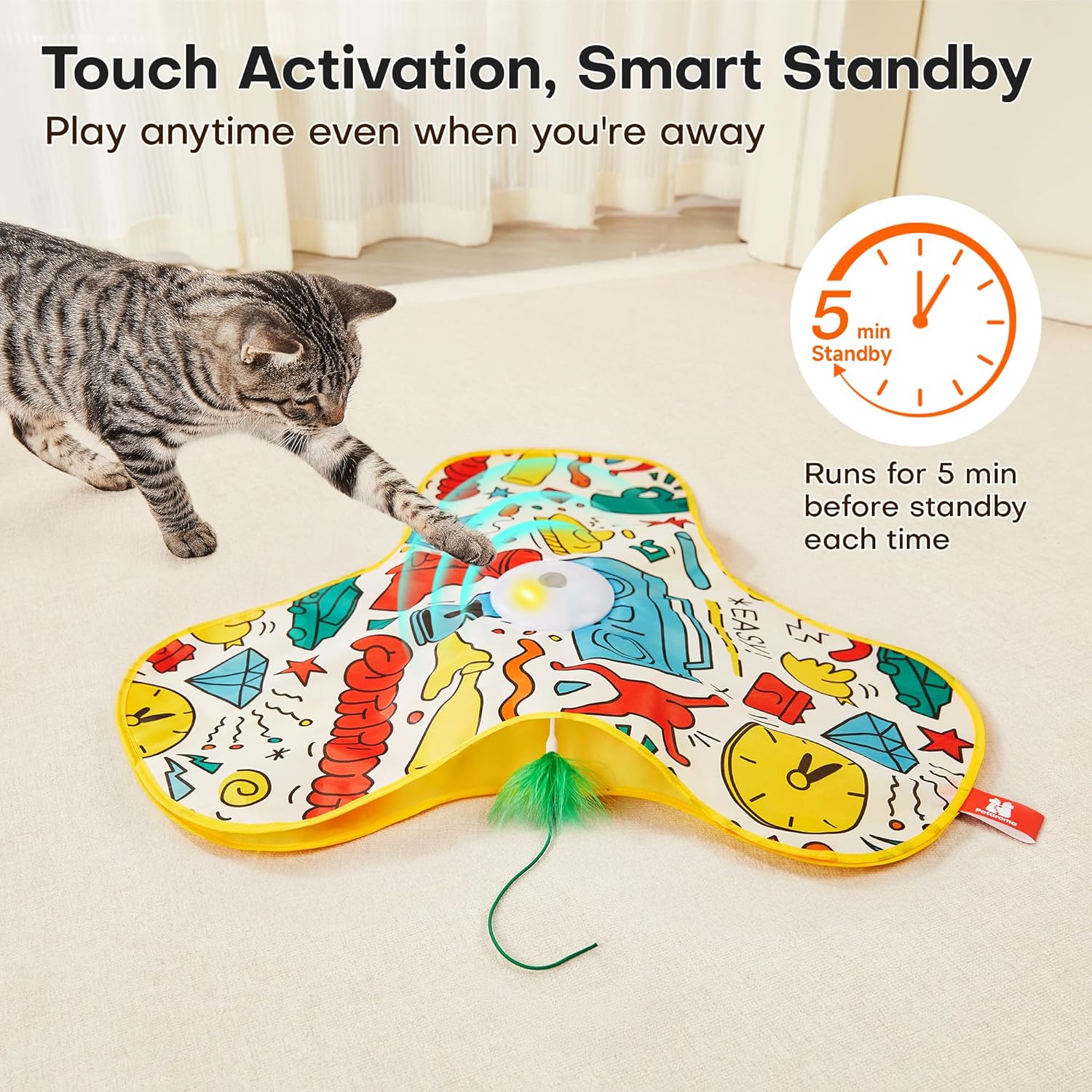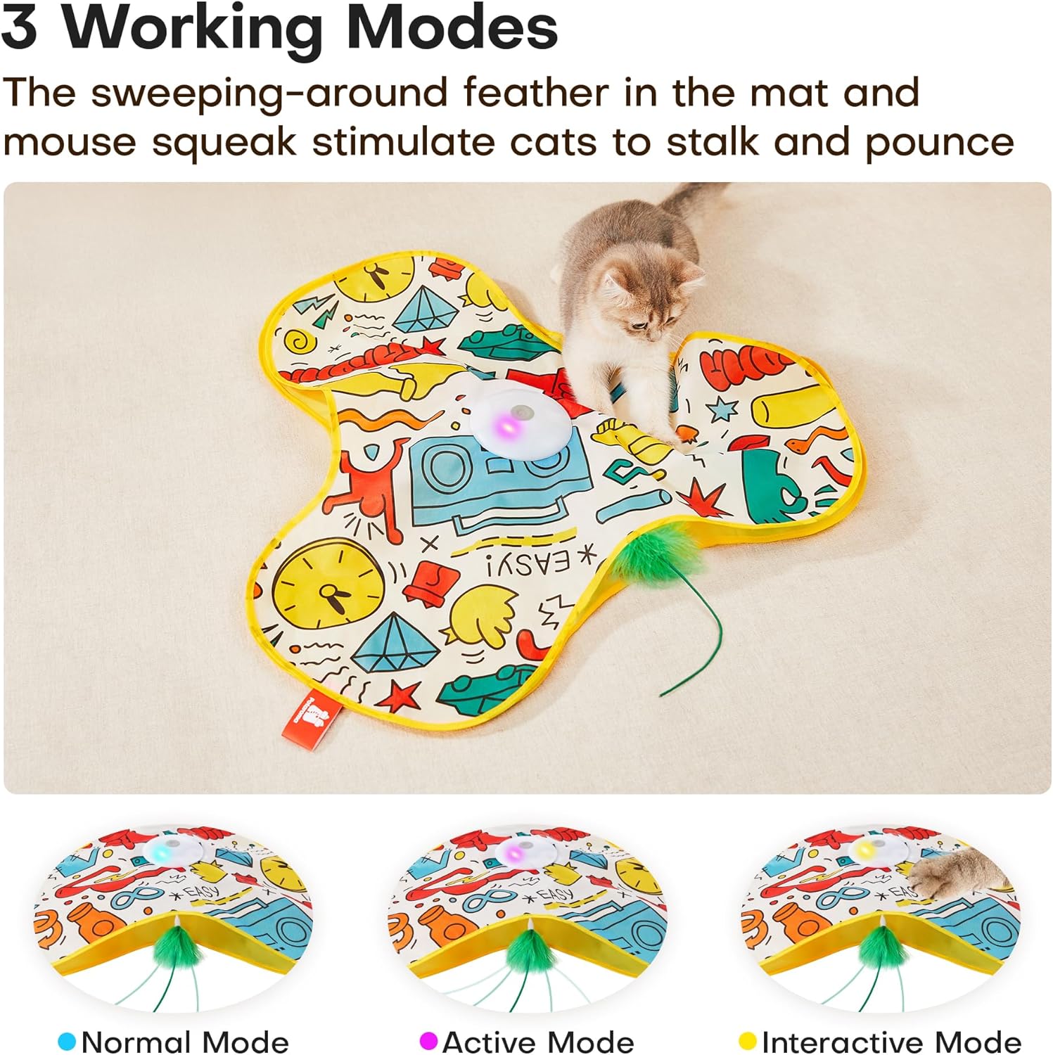 - Smart Motion Sensor & Three Modes β Equipped with intelligent touch activation, this electronic toy allows your cat to self-play by simply touching the toy. Choose from three adjustable modes: normal, active, and interactive, keeping your cat energized and reducing boredom for hours of indoor fun and enrichment.