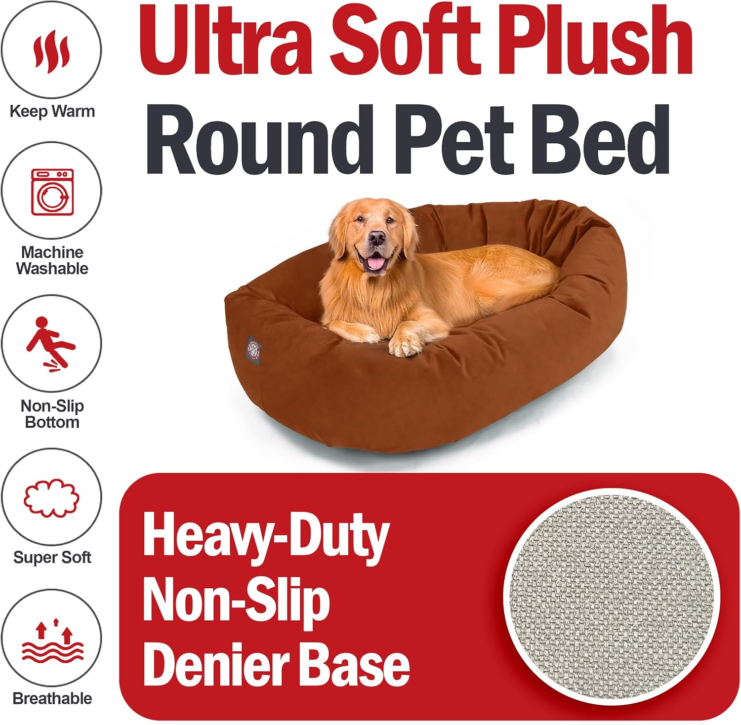 Majestic Pet 40 Inch Suede Shredded Memory Foam Mix Calming Large Dog Bed Washable 40 x 29 x 9 (Inch) - Cozy Soft Round Donut Dog Bed with Spine for Head Support - Pet Bed Rust