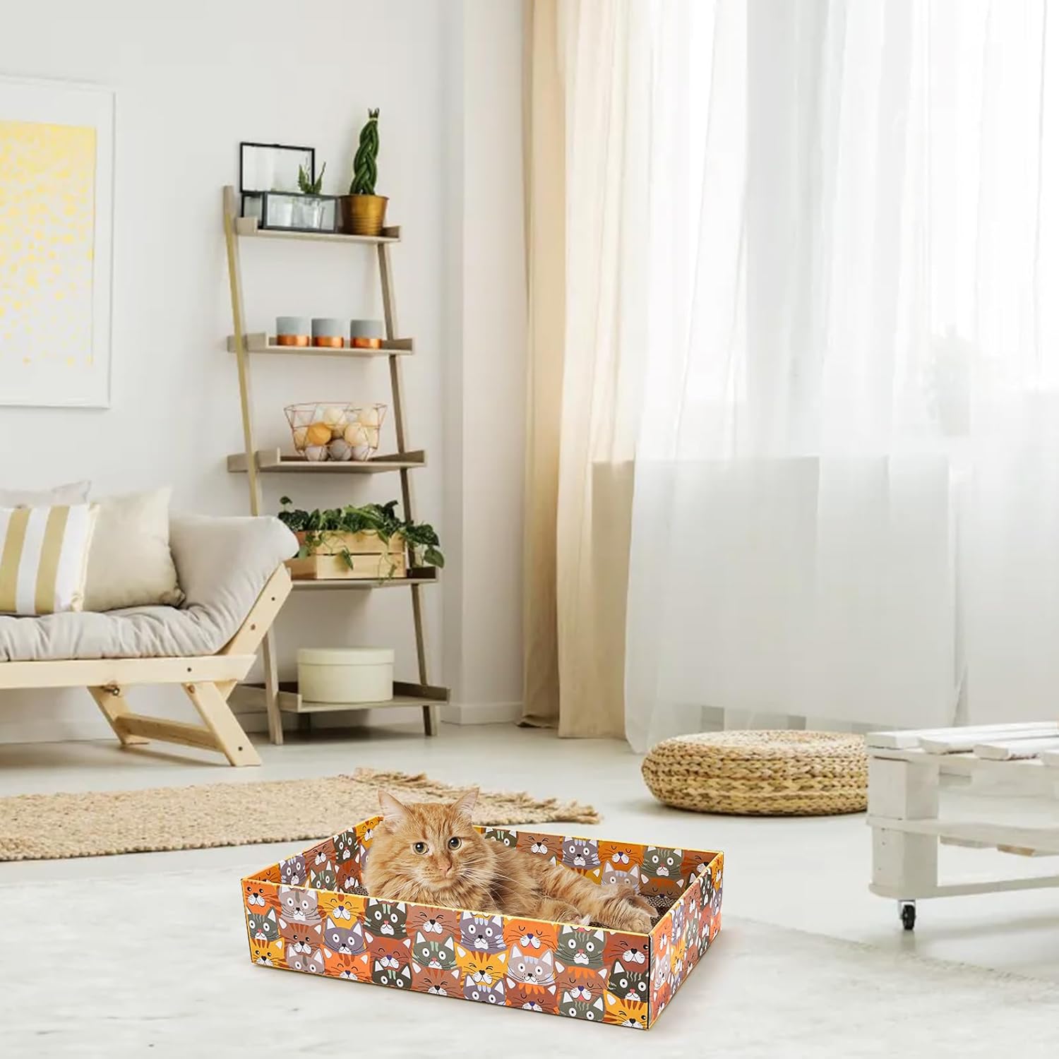 - Cute Patterns Design: These interactive cat boxes are designed with cute cat patterns, adding a touch of color and charm to your home. The cute cat lounge will attract cats to play, providing an comfort place for them.