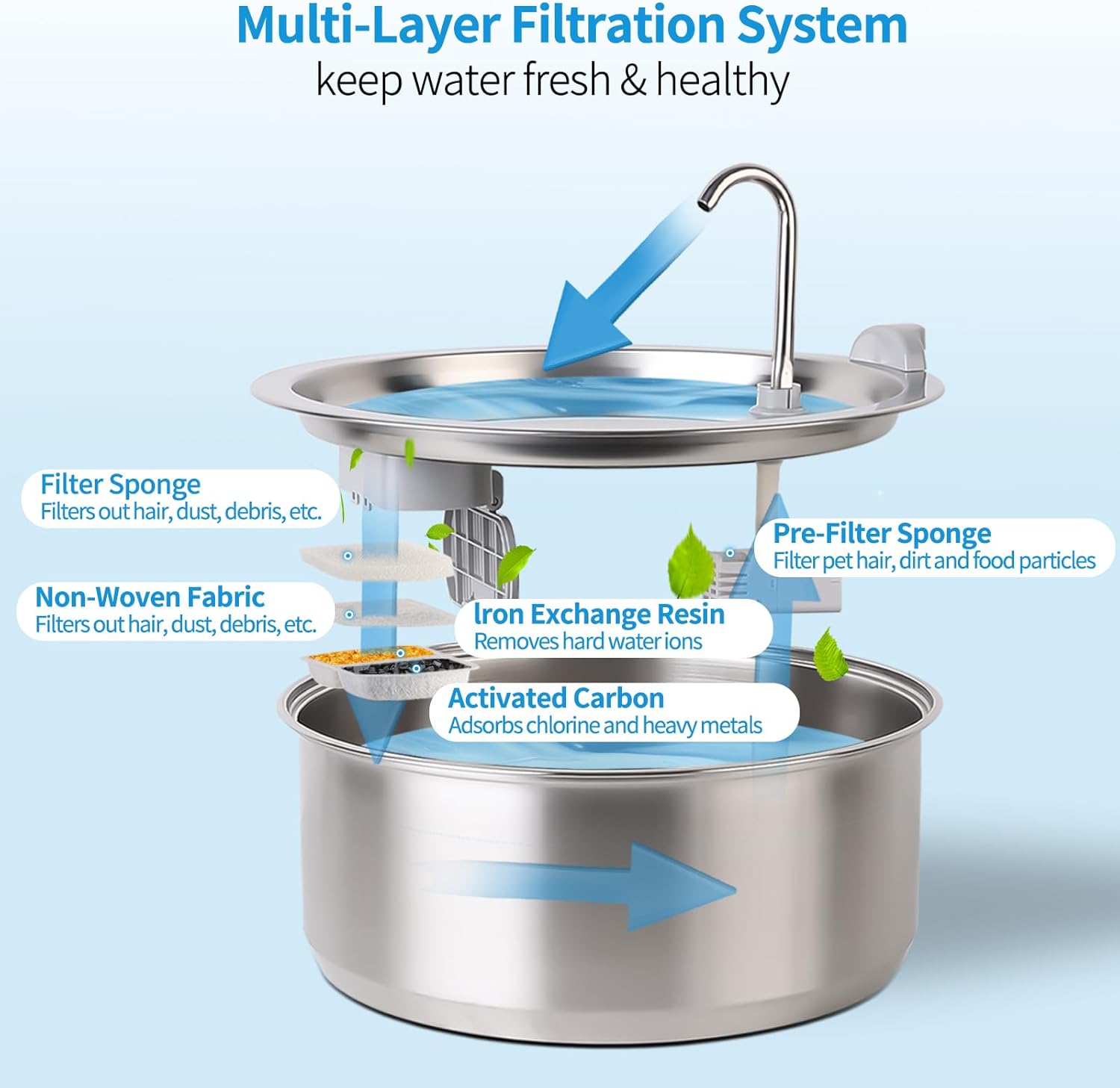 - Regularly clean and replace filterοΌRegularly replace clean filters based on the number of your pets and your pet's drinking frequency.It is recommended to replace the filter every 2-3 weeks.