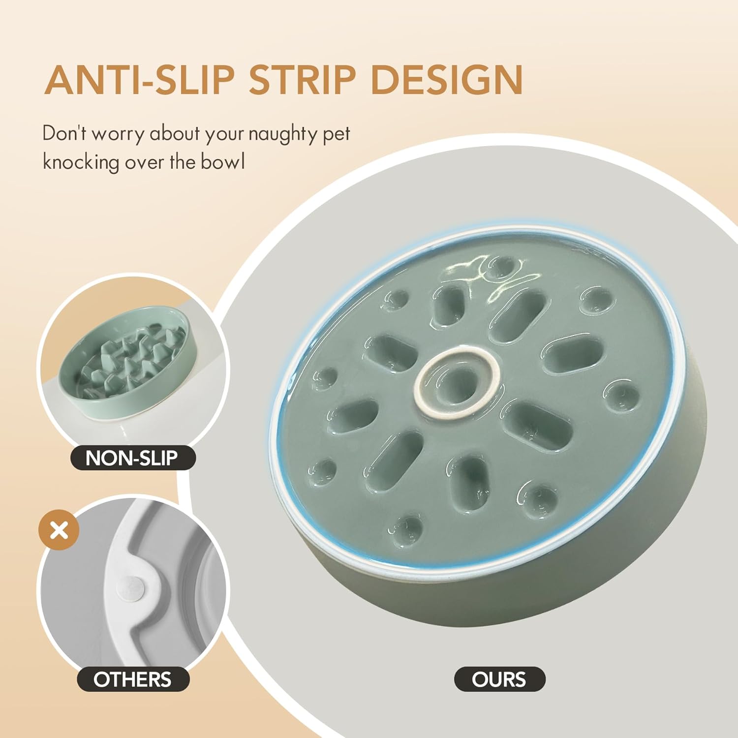 - Stable and Non-slip: Heavy duty ceramics blow with Anti-Slip strip at the bottom of the dog bowl to prevent bowls from sliding and overturning. It can also prevent food from spilling on the ground.