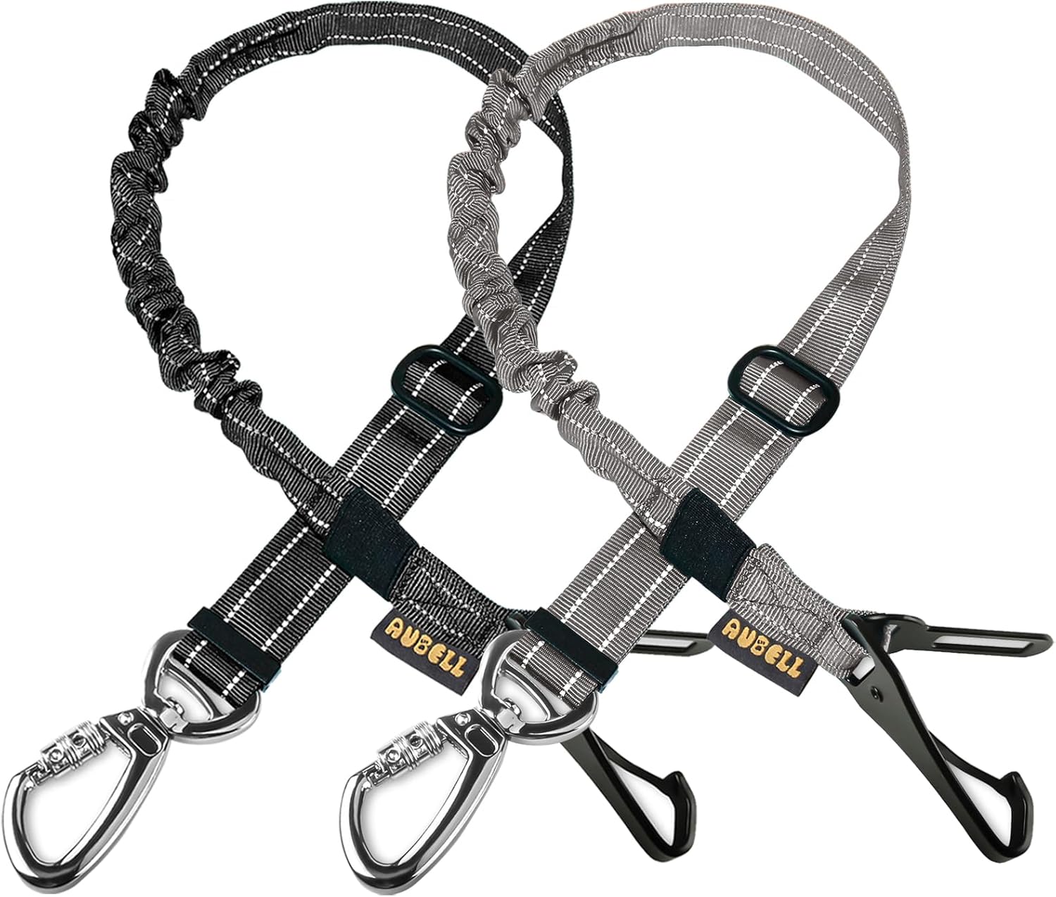AUBELL Dog Seat Belt for Car,2 Pack Set 3-in-1 Adjustable Reflective Bungee Heavy Duty Dog Car Harness Tether with Clip Hook Latch & Buckle,Swivel Zinc Alloy Carabiner,Black+Grey