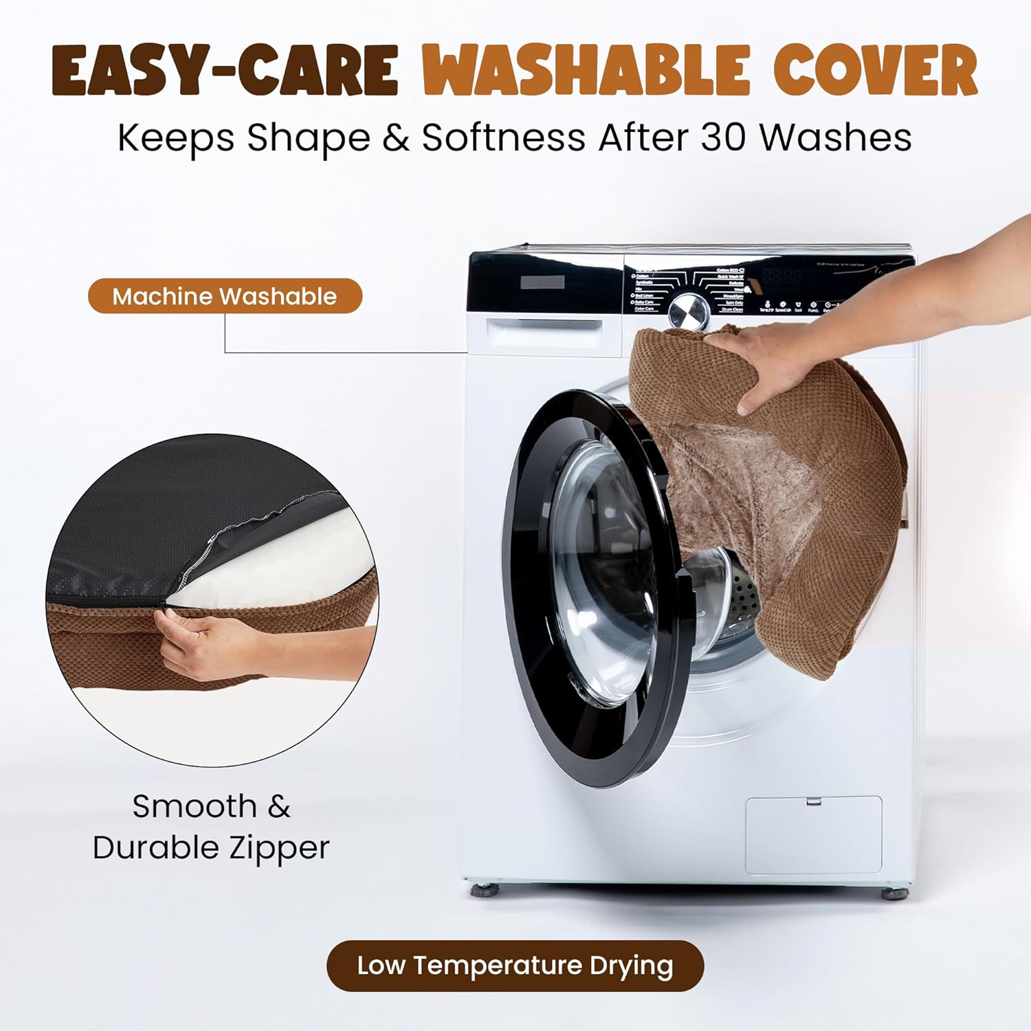 - MESS-PROOF & EASY CLEAN -- Spills? No problem. The fabric won't hold stains, and with a quick unzip, you can chuck the cover in the wash to keep it looking fresh. Just keep the cushion part out of the machine.