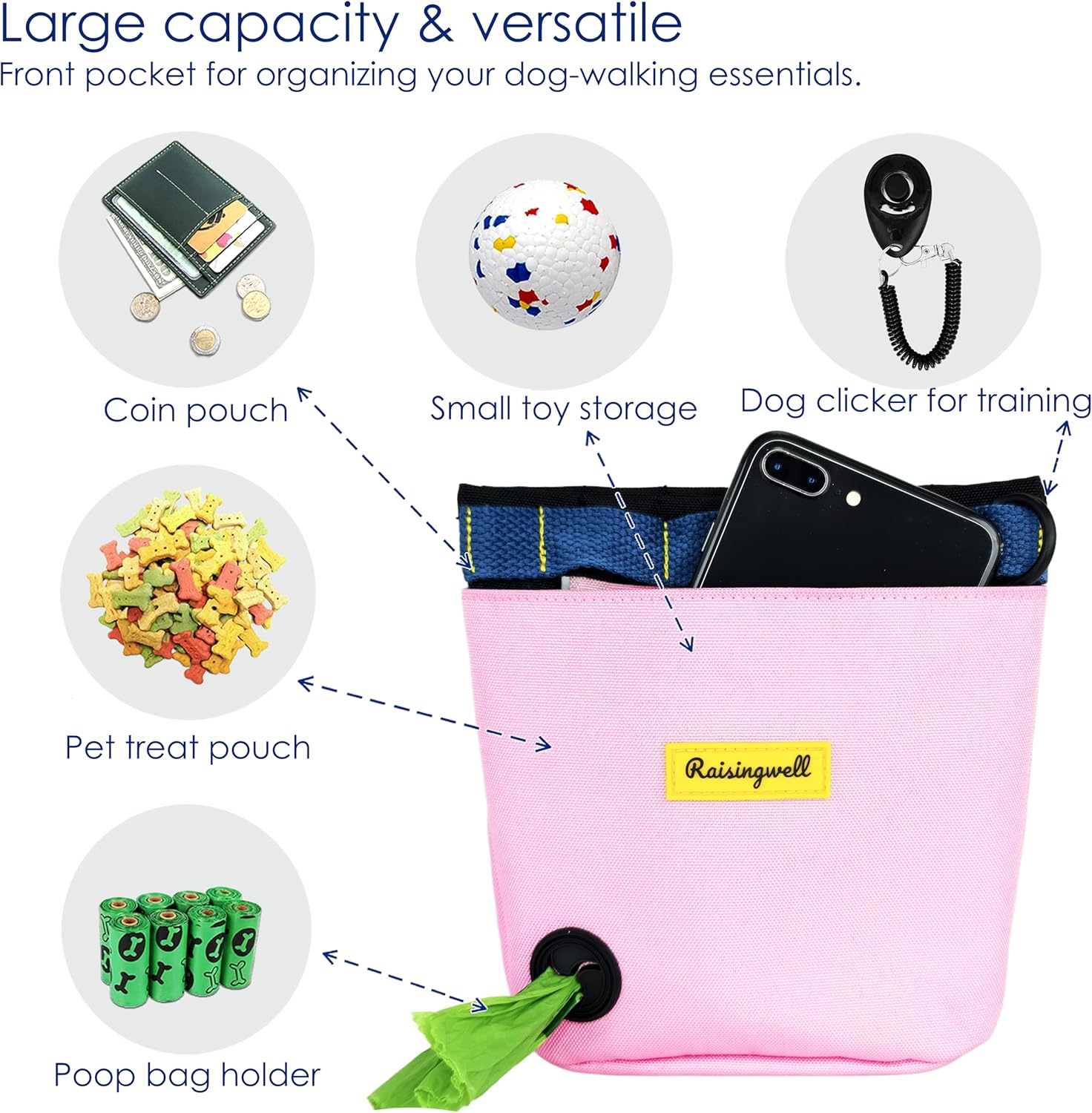- 5.Durable Tech Material: Raisingwell's dog treat training pouch is made from durable, washable, and non-toxic fabric. Notably, its waterproof lining solves the problem of difficult-to-clean interiors of training bags, making it a great choice for your dog treat bag or dog treat fanny pack.