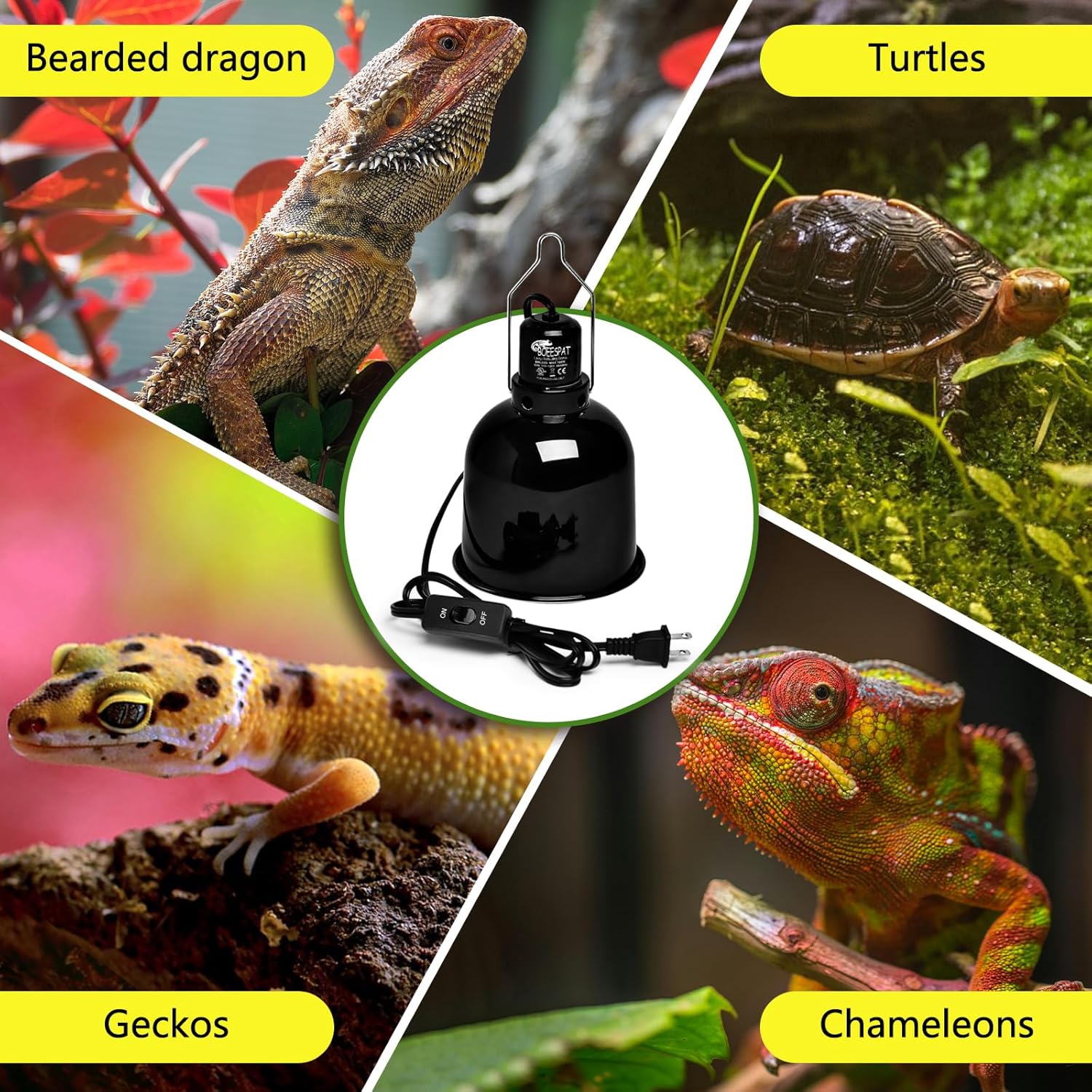 - 【Efficient Heat Dissipation】: Multiple ventilation holes on the top provide efficient heat dissipation, safeguarding the bulb from overheating. This design extends bulb life and reduces replacement frequency, ensuring a stable and reliable lighting environment for your reptiles/pets.