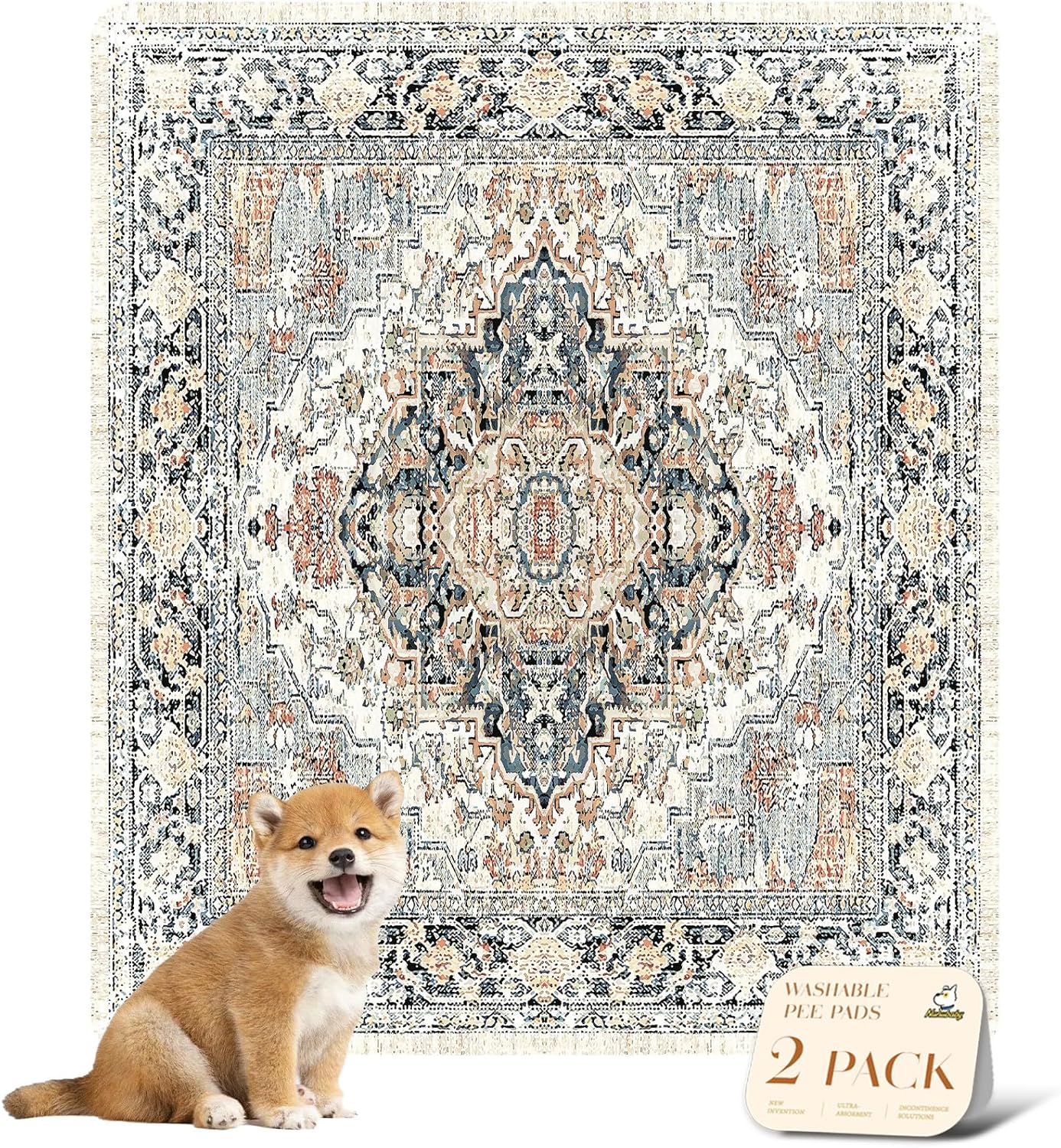 nunubaby Washable Pee Pads for Dogs, Stylish, Non-Slip and Leak-Proof Pee Pads. Reusable Potty Pads for Dogs for Crates and Floors.(Beige/Multi, 31" x36" )