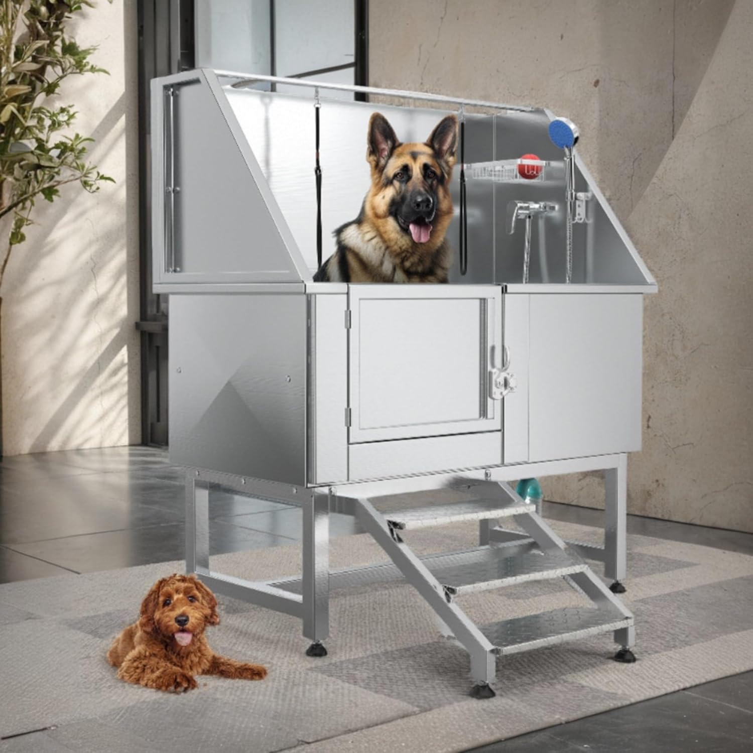 - Ideal Construction: YITAHOME professional dog bathtub's body boasts a 304 stainless steel with a load capacity of 330 lbs; It resists deformation and rust, ensuring easy cleaning and lasting durability; The fully welded one-piece design prevents water leakage and allows easy installation