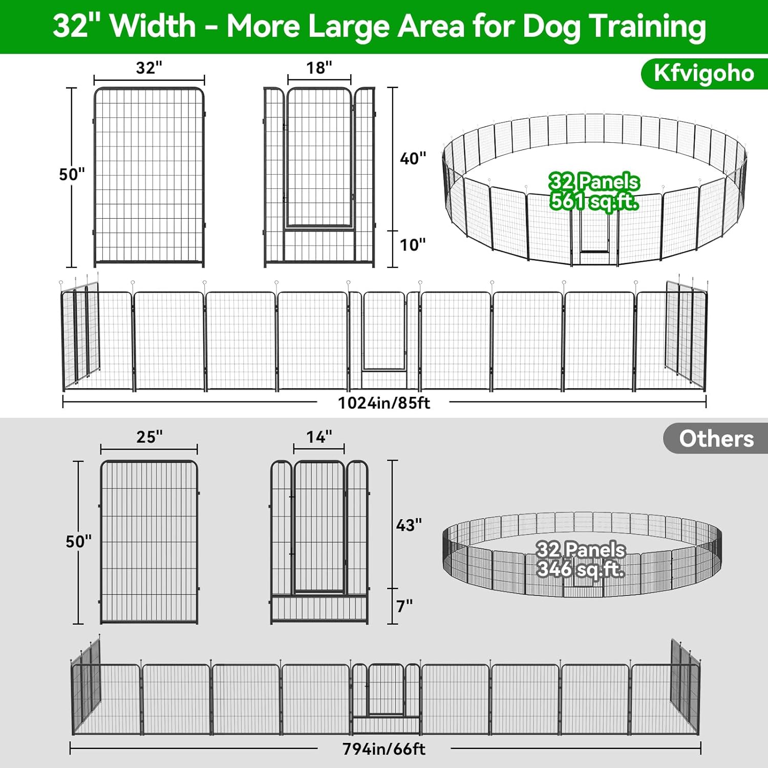 Dog Playpen Outdoor Extra Wide 32 Panels Heavy Duty Dog Fence 50" Height Anti-Rust with Doors Portable for RV Camping Yard, Total 84FT, 561 Sq.ft, Snowy Black