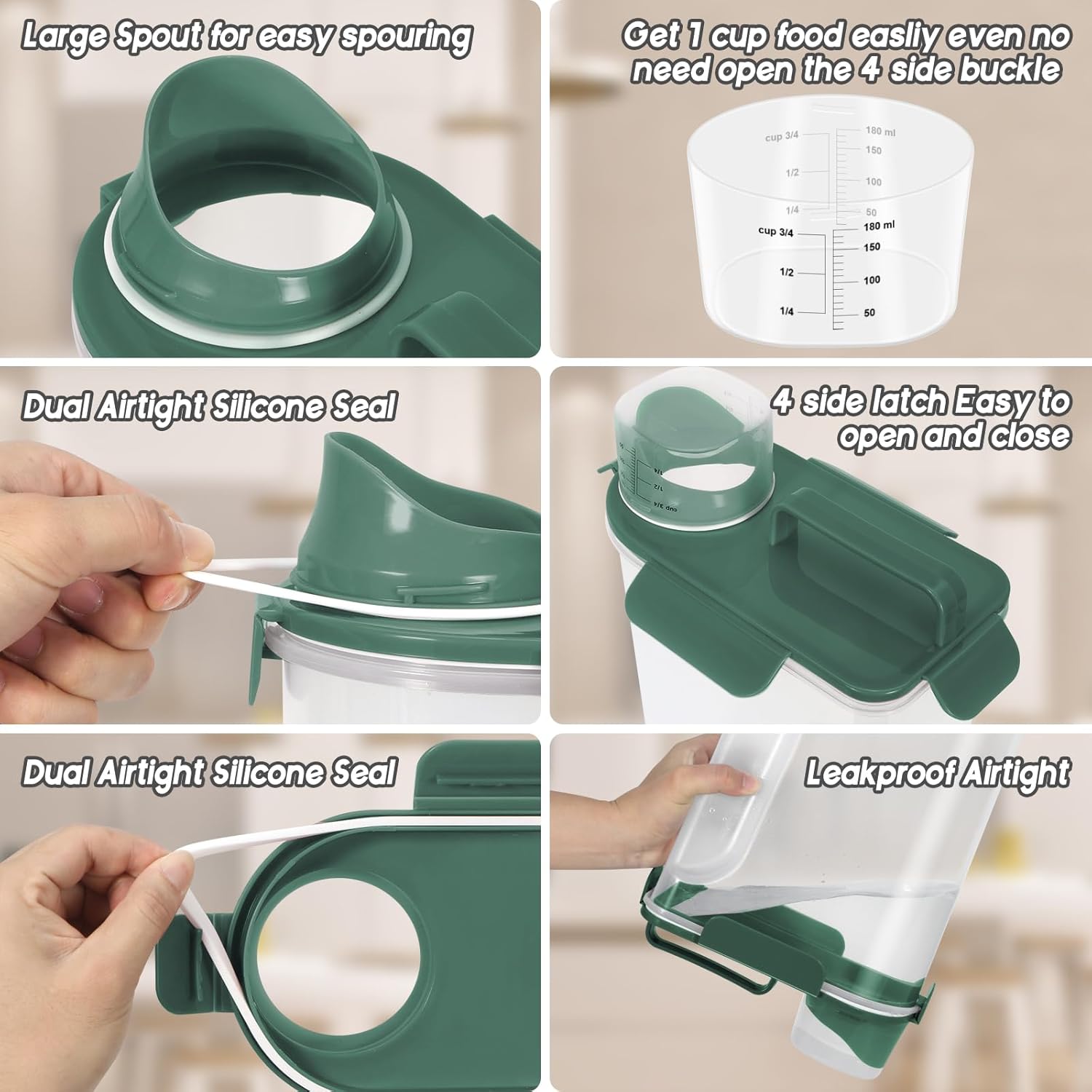 5lbs Cat Dog Storage Container Portable with Upgraded Large Spout and Cup, Plastic Pet Food Dispenser BPA-Free for Small Animal Kibble, Bird Seed, Oatmeal, Rice, Flour, Brown Sugart-2 Set Royal Green