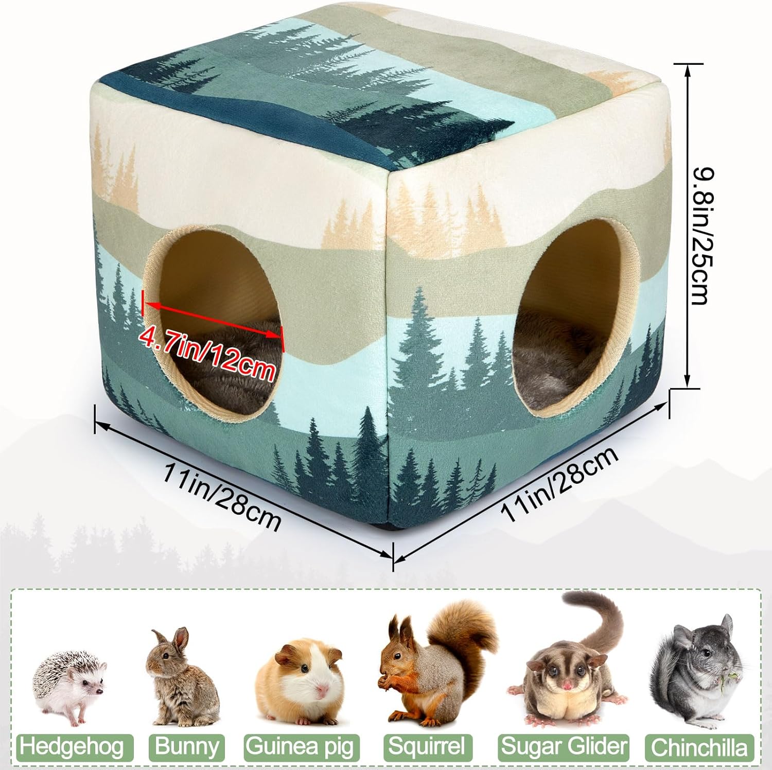 - Ideal for Small Animals: The dimensions of the hamster hideout are length 11", width 11", height 9.8", making it suitable for guinea pigs,ferrets,chinchillas,dwarf rabbits, and other small animals; Please measure your pet's size to ensure a proper fit