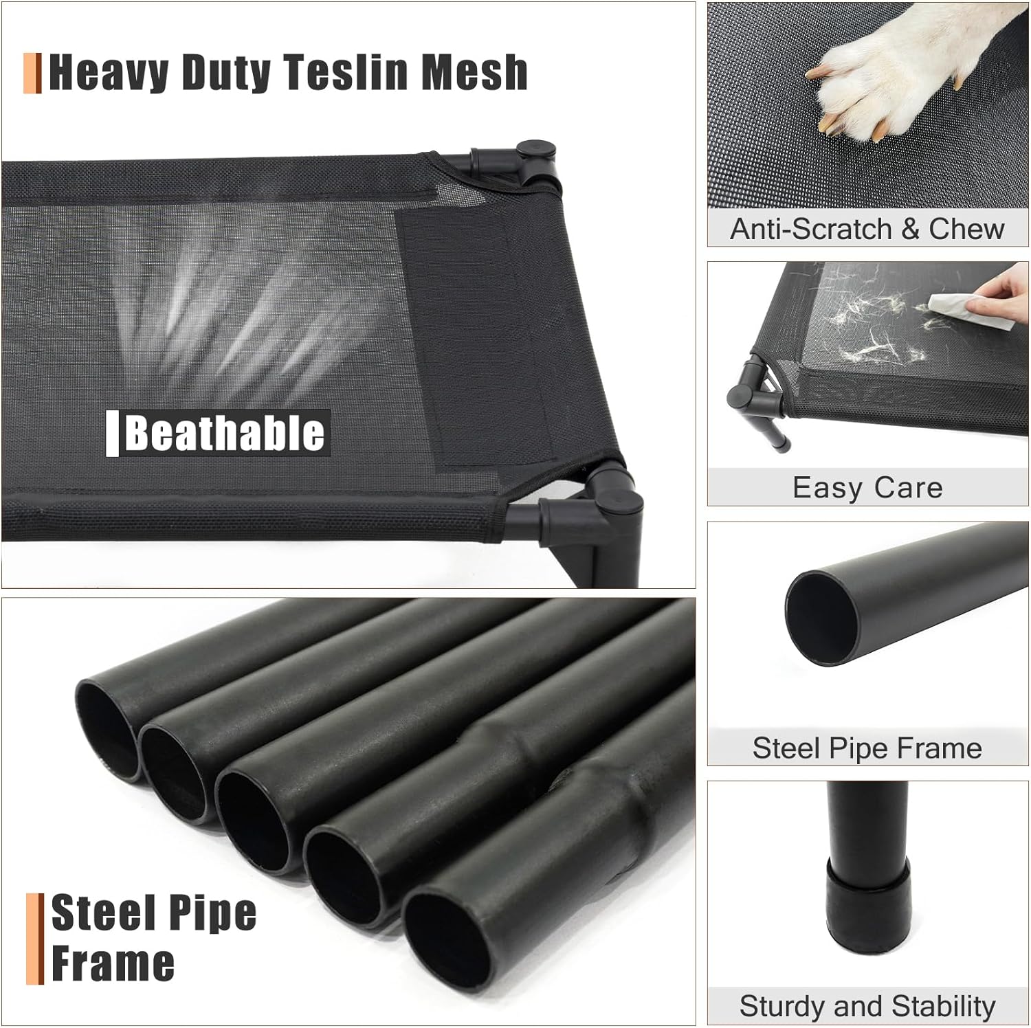 XL Elevated Dog Bed for Large Dogs, Extra Raised Dog Cot Beds, Heavy Duty Pet Cots with Durable Supportive Teslin Recyclable Mesh, Indoor & Outdoor Pet Bed