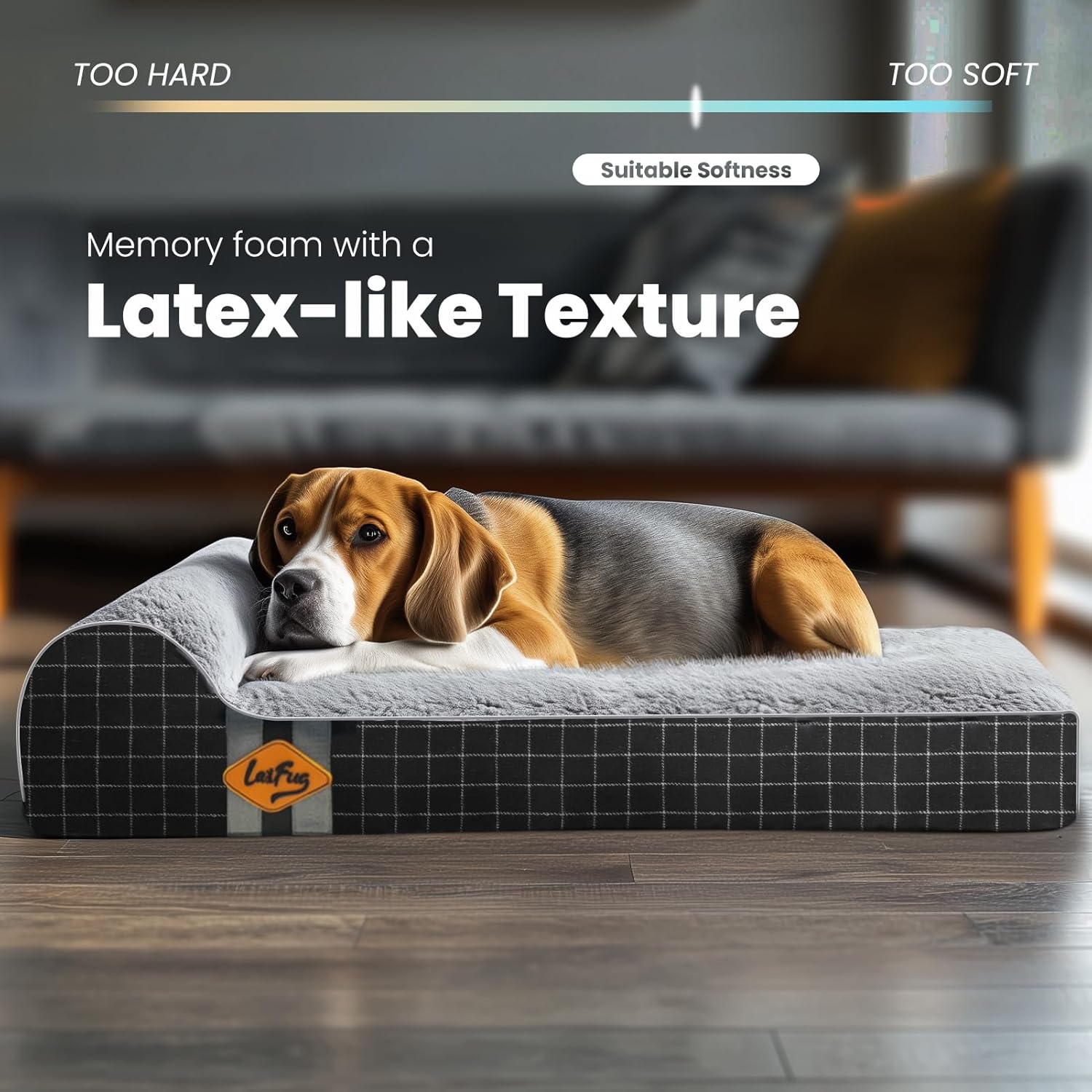 Laifug Orthopedic Memory Foam Dog Bed with Durable Water Proof Liner and Removable Washable Cover (Large (40"x25"x5.5"), Black Grid Gray)