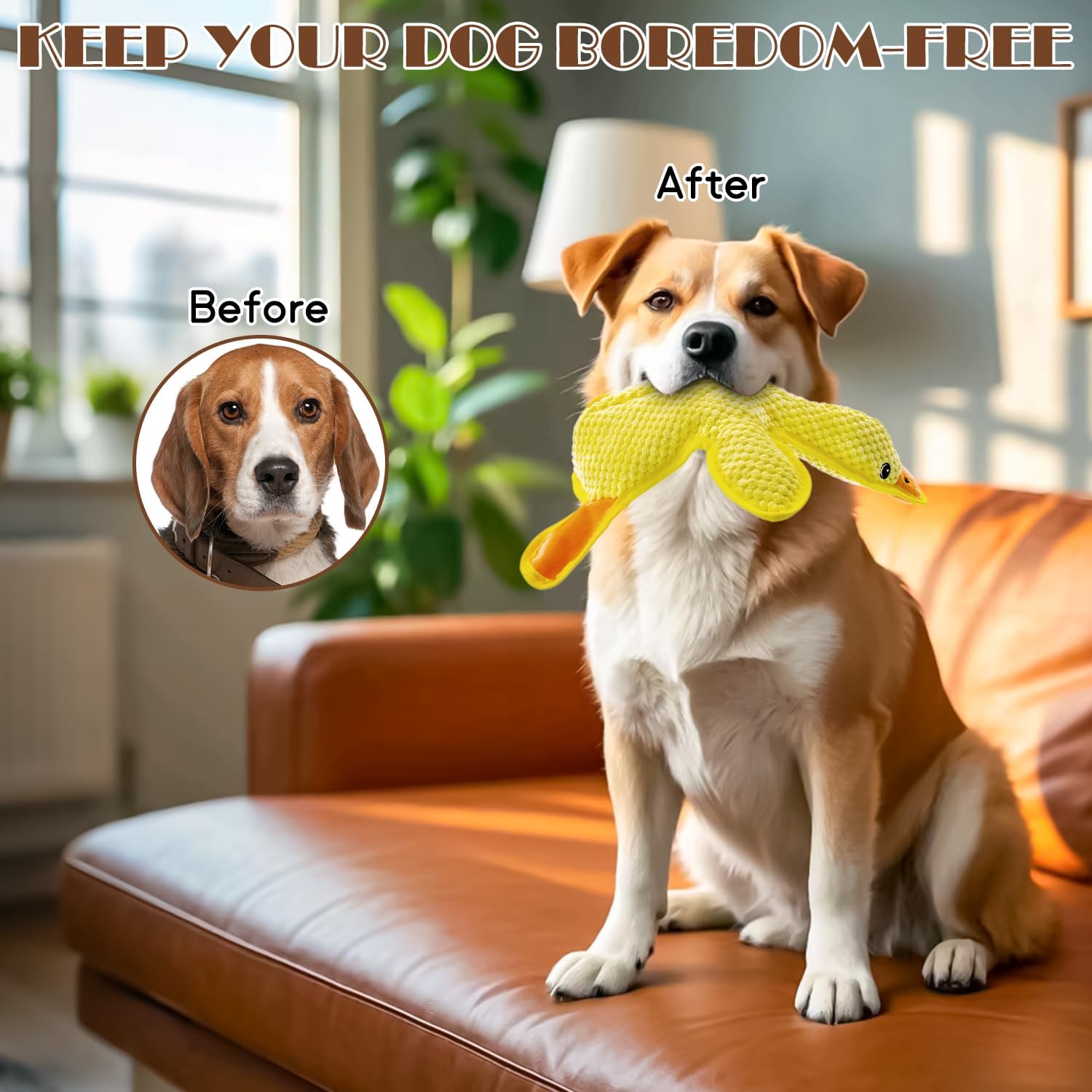 - Hours of Fun: When youβre away, squeaky toys would help release their anxiety and pressure, cleaning their teeth, and reduce their destructive behavior No longer worry about your dogβs alone at home, or pillows, sofas, shoes, etc. getting destroyed. With toys dogs wonβt feel bored or chew the house up, their excess energy will be released.