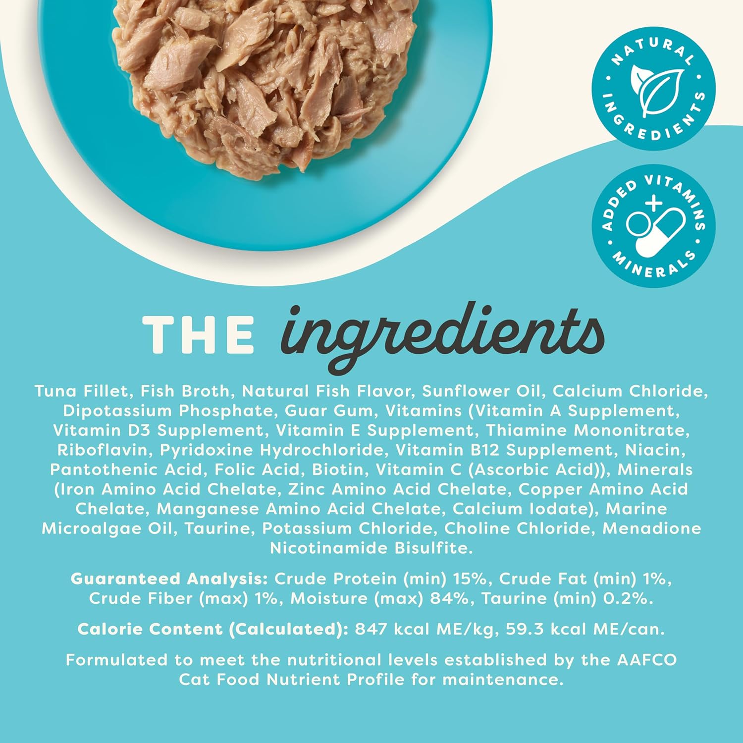 Applaws Vitality Wet Cat Food in Broth, Natural Canned Cat Food, Wet Food for Cats with Added Vitamins and Minerals, Grain Free, Carrageenan Free, Tuna Fillet in Broth (24 Count, 2.47 oz Cans)