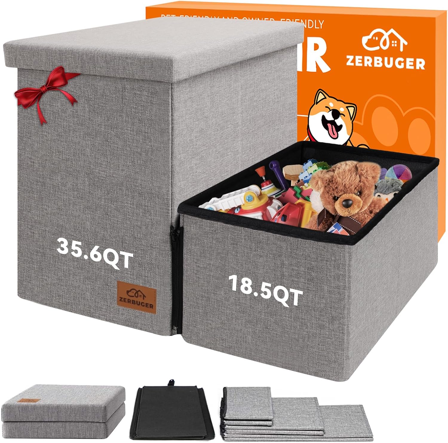 - 2-IN-1 DOG STAIRS WITH STORAGE: Zerbuger pet stairs not only provide a stable and cozy stair for your pet to climb, but also serve as a convenient large storage area total of 54QT for your pet's clothes, toys, or any other supplies. Our pet steps are covered with removable lids, Every steps are designed as storage boxes.
