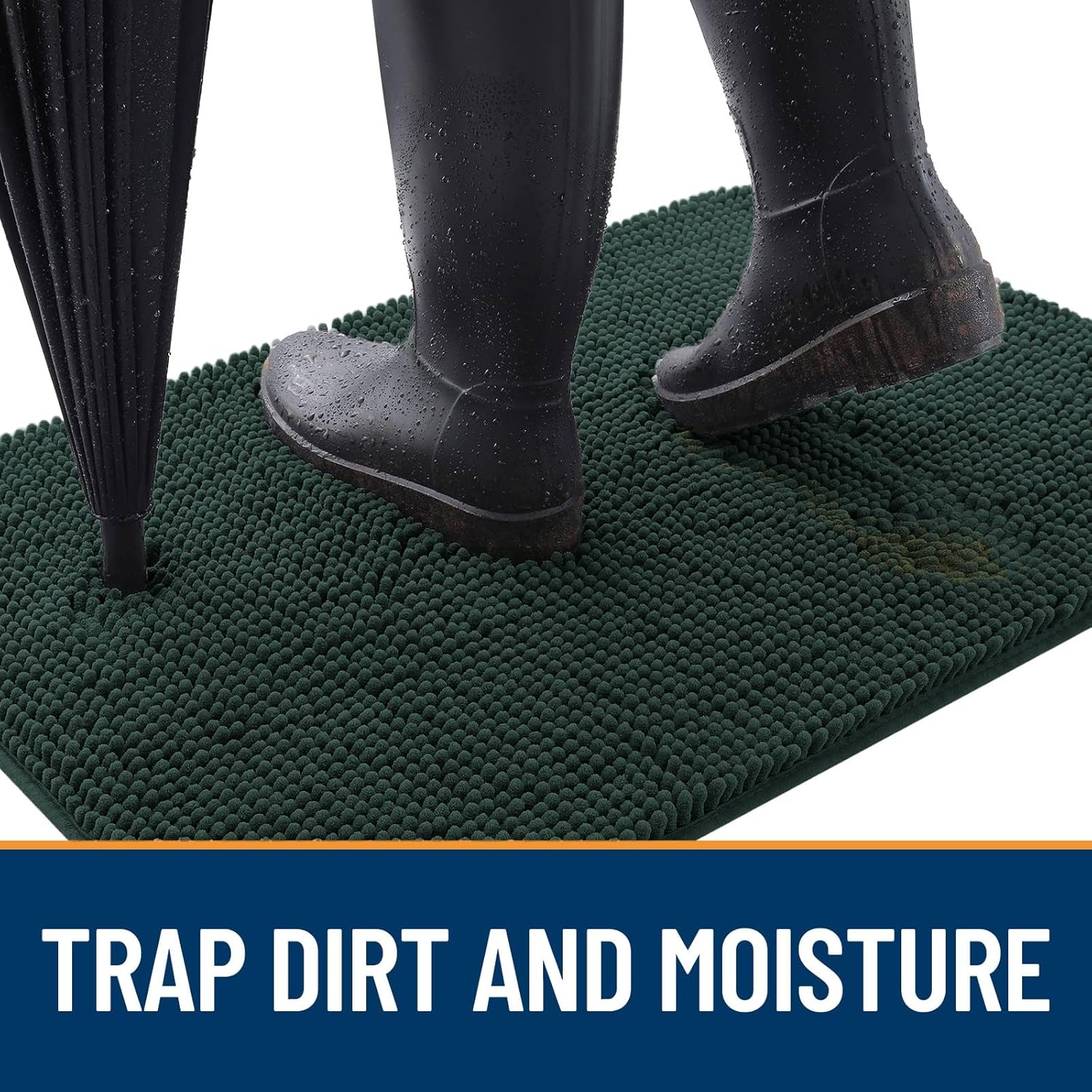 OLANLY Dog Door Mat for Muddy Paws 47x20, Absorbs Moisture and Dirt, Absorbent Non-Slip Washable Doormat, Quick Dry Chenille Mud Mat, Entry Indoor Entryway Carpet for Inside Floor, Blackish Green