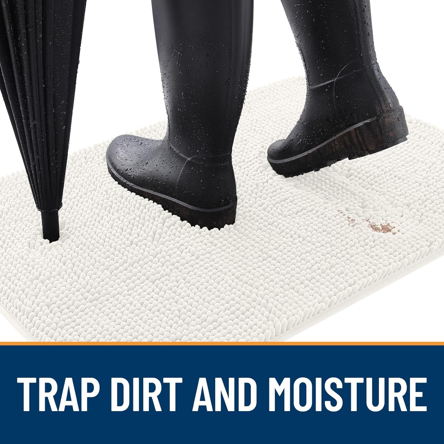 OLANLY Dog Door Mat for Muddy Paws 47x17, Absorbs Moisture and Dirt, Absorbent Non-Slip Washable Doormat, Quick Dry Chenille Mud Mat for Dogs, Entry Indoor Entryway Carpet for Inside Floor, Ivory