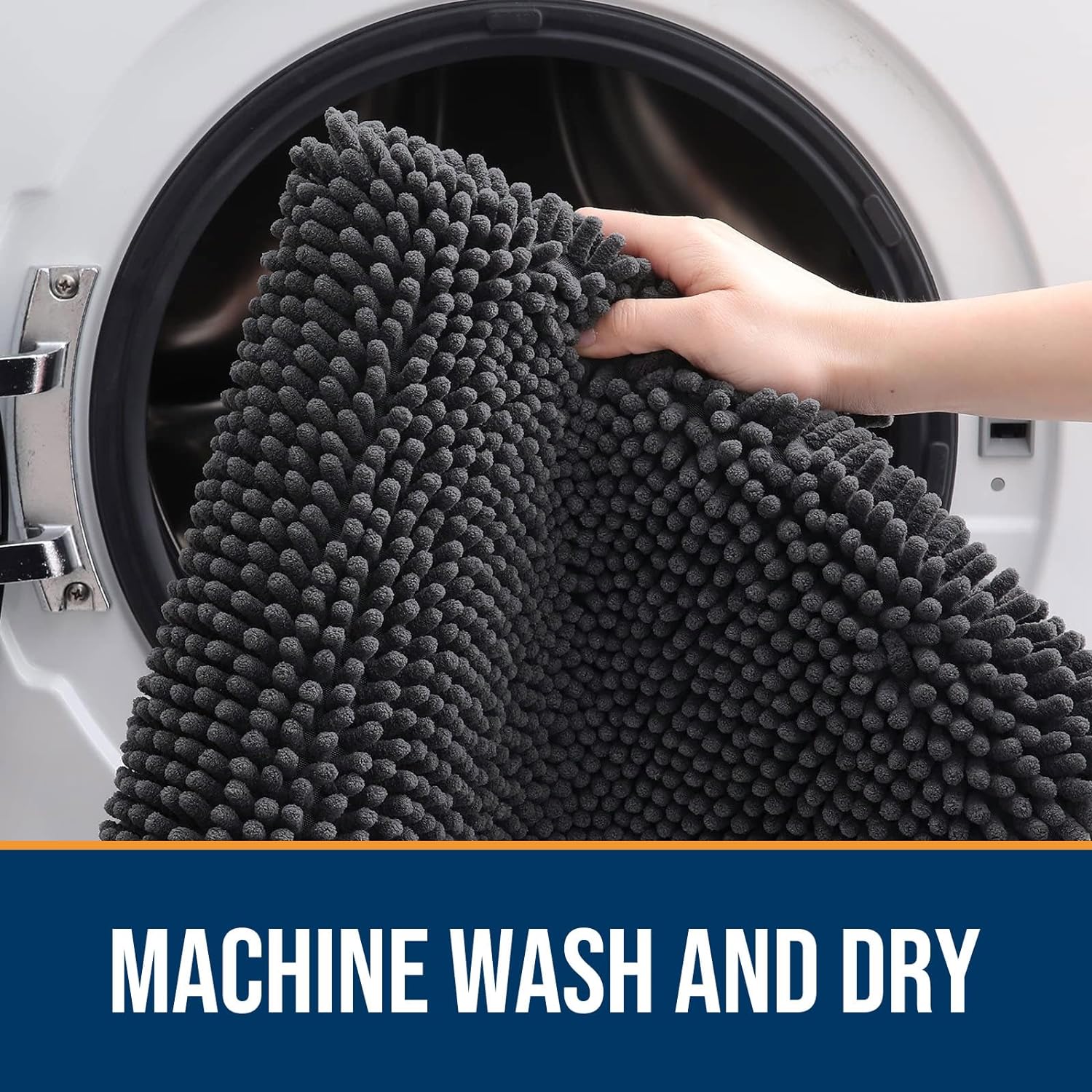 OLANLY Dog Door Mat for Muddy Paws 59x20, Absorbs Moisture and Dirt, Absorbent Non-Slip Washable Doormat, Quick Dry Chenille Mud Mat for Dogs, Entry Indoor Entryway Carpet for Inside Floor, Dark Grey