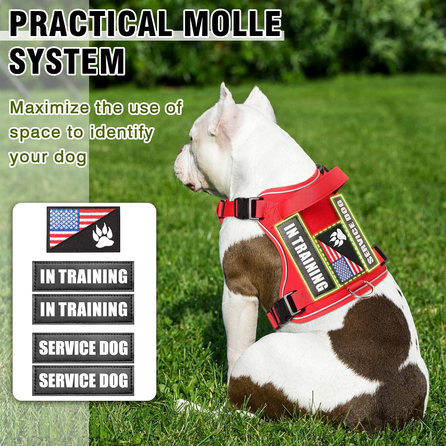 WINSEE Service Dog in Training Harness with 5 PCS Patches, Reflective Tactical Dog Vest Harness, Adjustable Soft Oxford Pet Harness with Easy Control Handle, Hook & Loop Panels for Walking Hiking