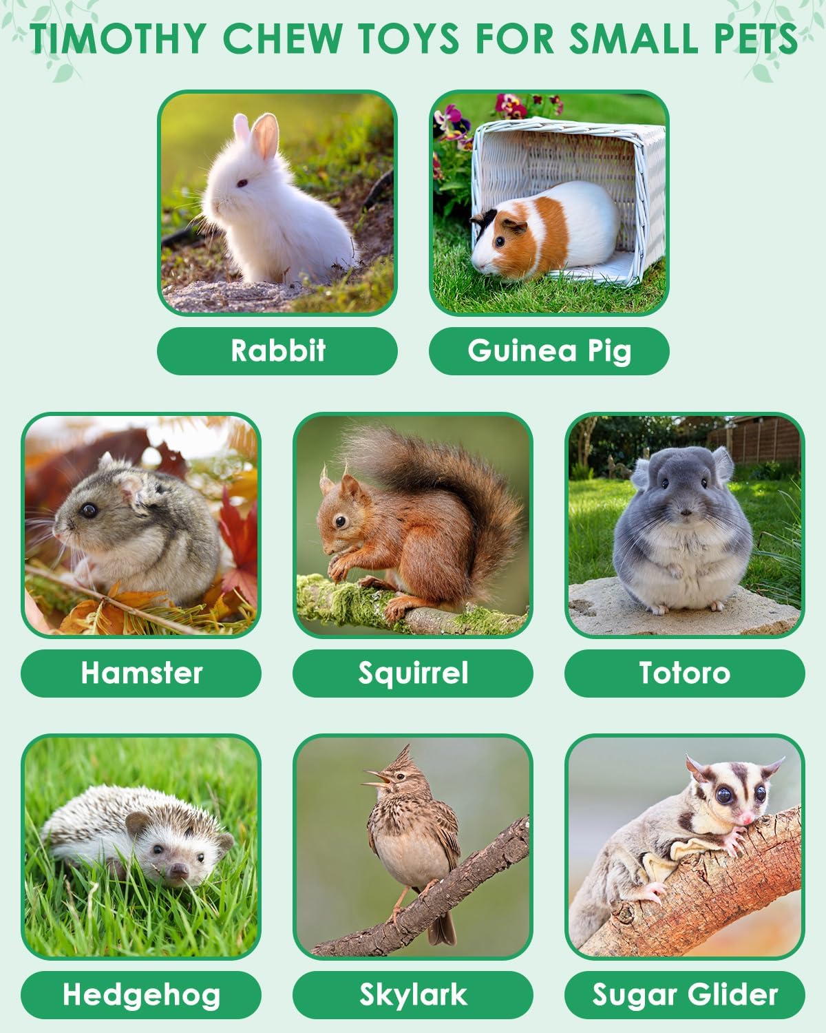 - 53 PIECES OF GUINEA PIG CHEW TOYS: 5 each of Timothy/Wheat/Beet+10 Applewood+6 Sweet Bamboo+6 Papaya Stems+6 Strawberries * 2+Mushrooms * 2+Heart shaped Grass Cake Timothy/Pumpkin/Dragon Fruit * 2 each+3 Original Vine Balls/Star Cake * 3 each