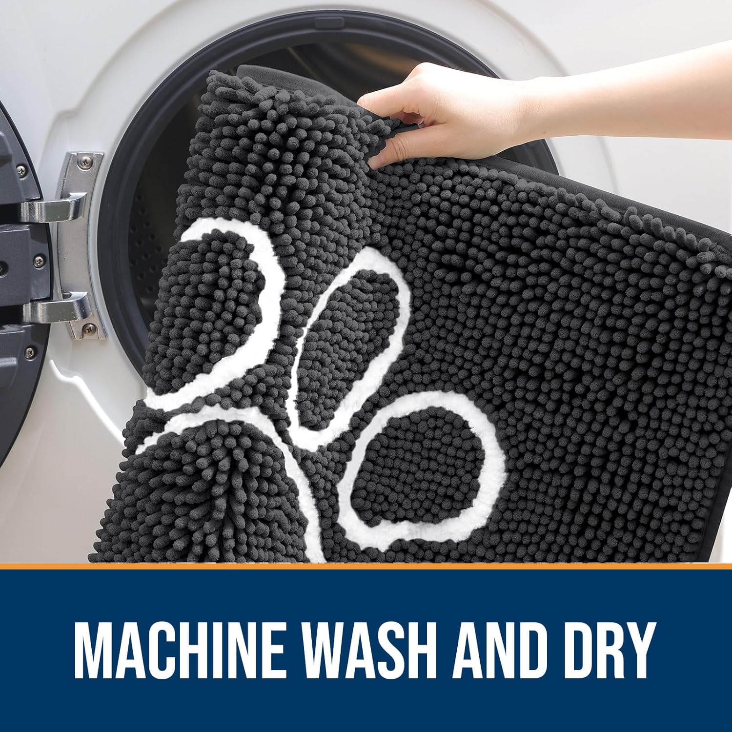 OLANLY Door Mat for Muddy Dog Paws 24x16, Ultra Absorbent Chenille Mud Doormat with Paw Print Design, Non-Slip Washable Doormat for Indoor Entryway, Quick-Dry Pet Bed Mats for Dirty Dogs, Dark Grey