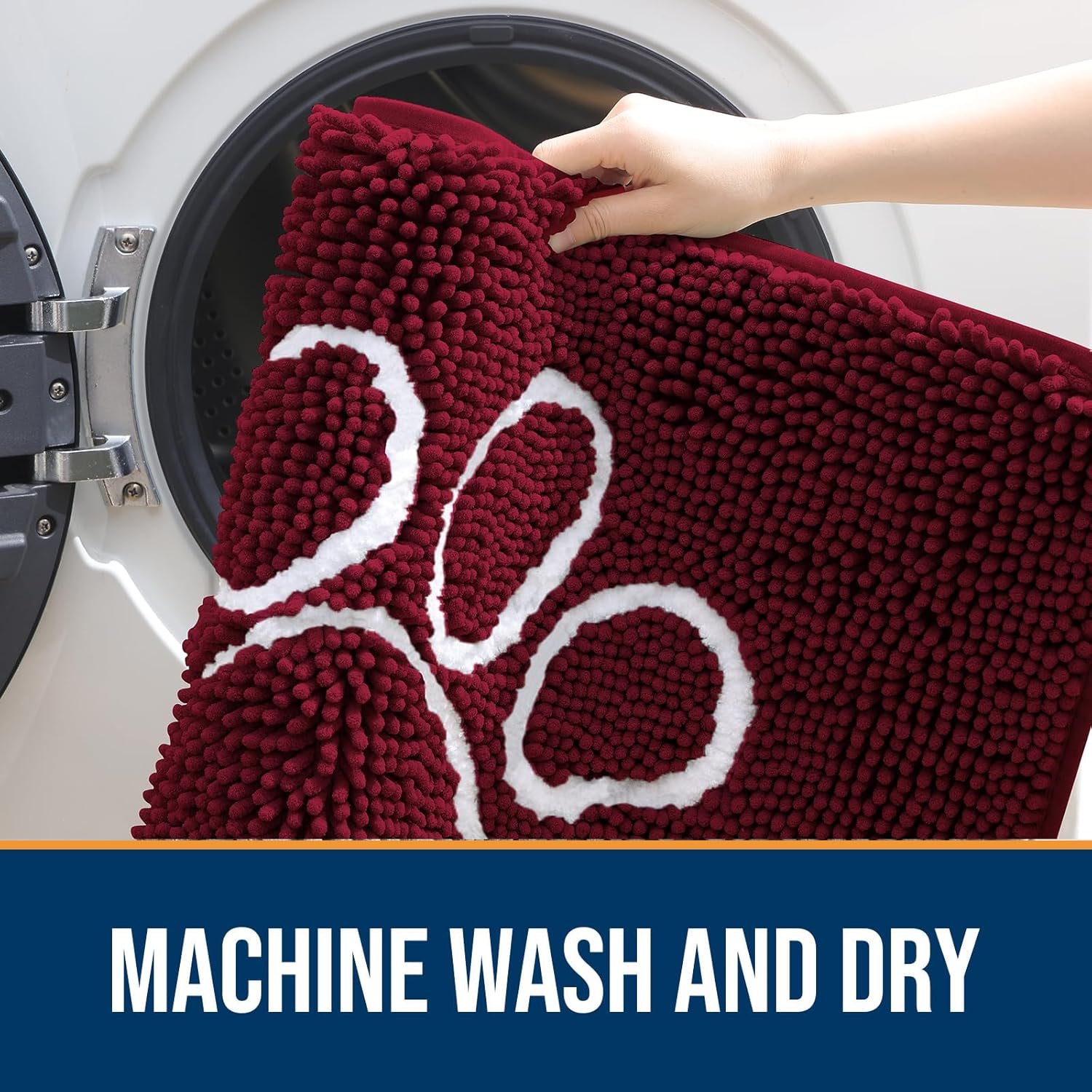 OLANLY Door Mat for Muddy Dog Paws 70x24, Ultra Absorbent Chenille Mud Doormat with Paw Print Design, Non-Slip Washable Doormat for Indoor Entryway, Quick-Dry Pet Bed Mats for Dirty Dogs, Burgundy