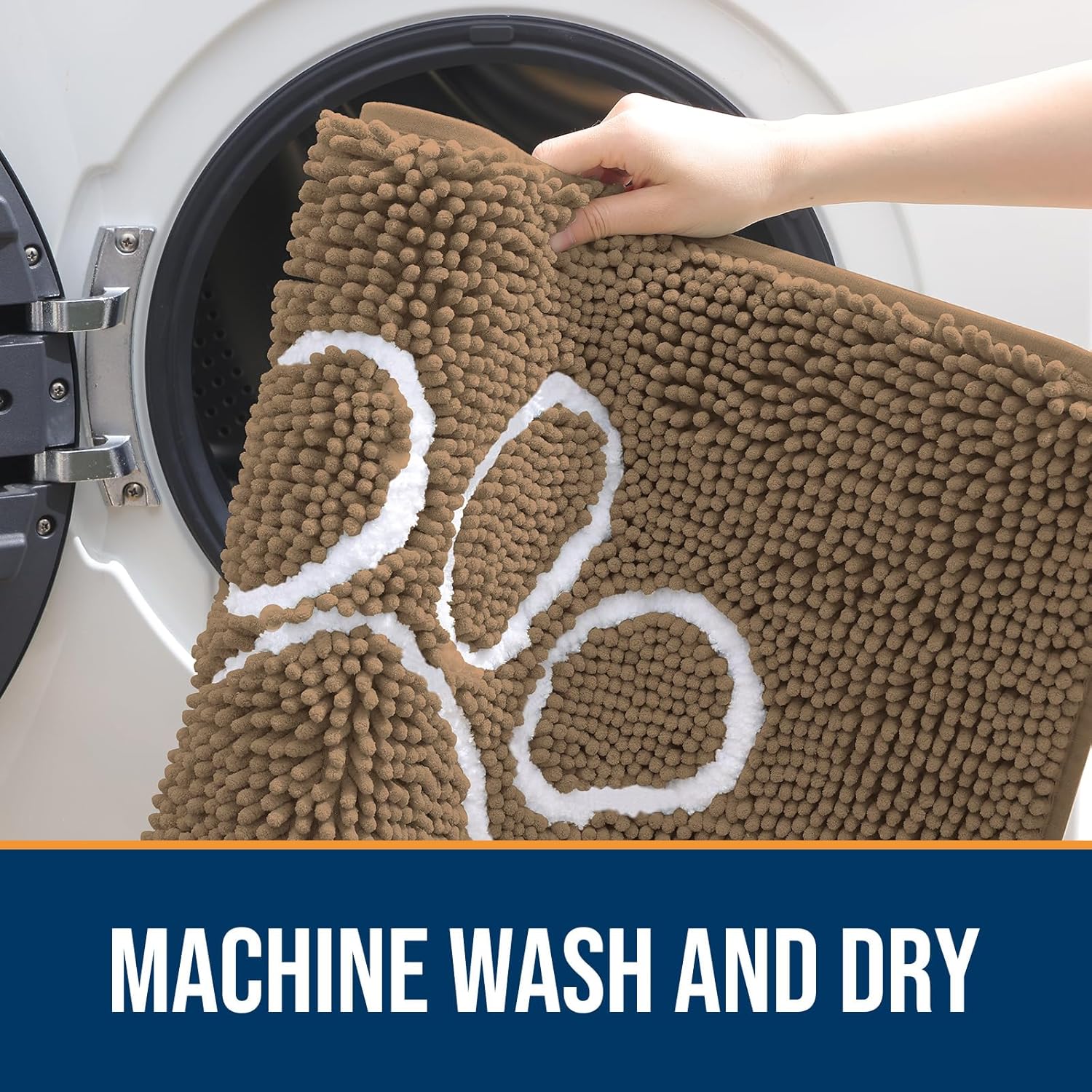 OLANLY Door Mat for Muddy Dog Paws 36x24, Ultra Absorbent Chenille Mud Doormat with Paw Print Design, Non-Slip Washable Doormat for Indoor Entryway, Quick-Dry Pet Bed Mats for Dirty Dogs, Tan