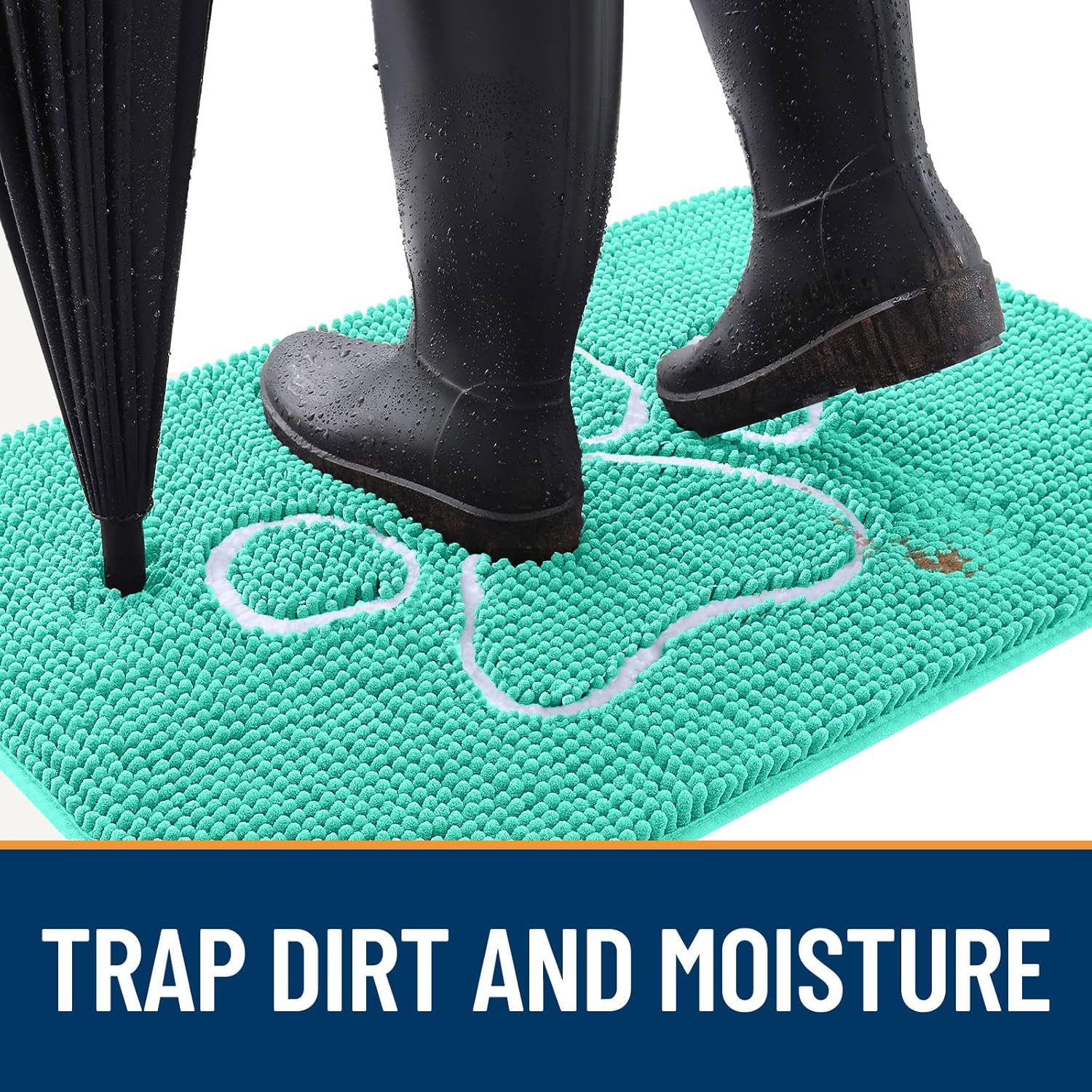 - [ABSORBS MOISTURE AND DIRT] OLANLY indoor dog mat for muddy paws is crafted to efficiently remove dirt and swiftly absorb moisture. With our doormat, your shoes will be instantly clear of any water, dust, grit, muck, sand, sleet, grass, slush, rain, or snow upon entering the house. It's an excellent choice for use as an entryway door mat, a welcoming door mat, or a dirt-trapping mat.