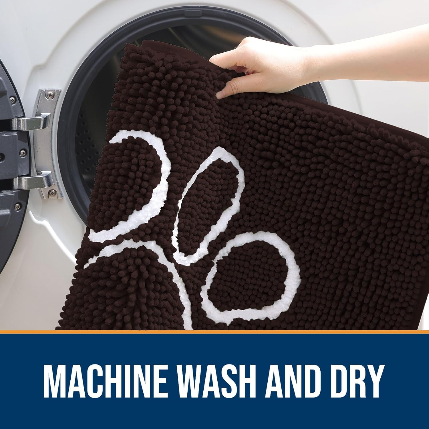 OLANLY Door Mat for Muddy Dog Paws 70x46, Ultra Absorbent Chenille Mud Doormat with Paw Print Design, Non-Slip Washable Doormat for Indoor Entryway, Quick-Dry Pet Bed Mats for Dirty Dogs, Brown
