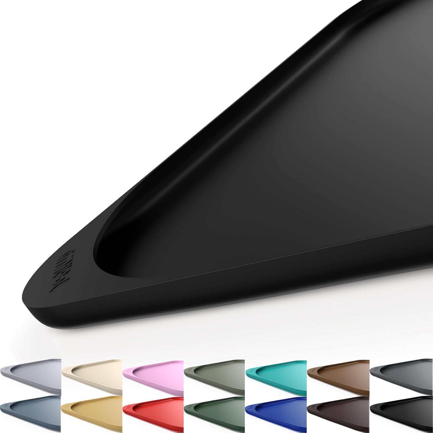 Silicone Pet Feeding Mat with Raised Edge & Residue Collection Pocket for Food and Water, Dog Bowl Mats, Cat Bowls Placemat with High Lip for Floor Waterproof, 19 x 12 x 0.7 Black
