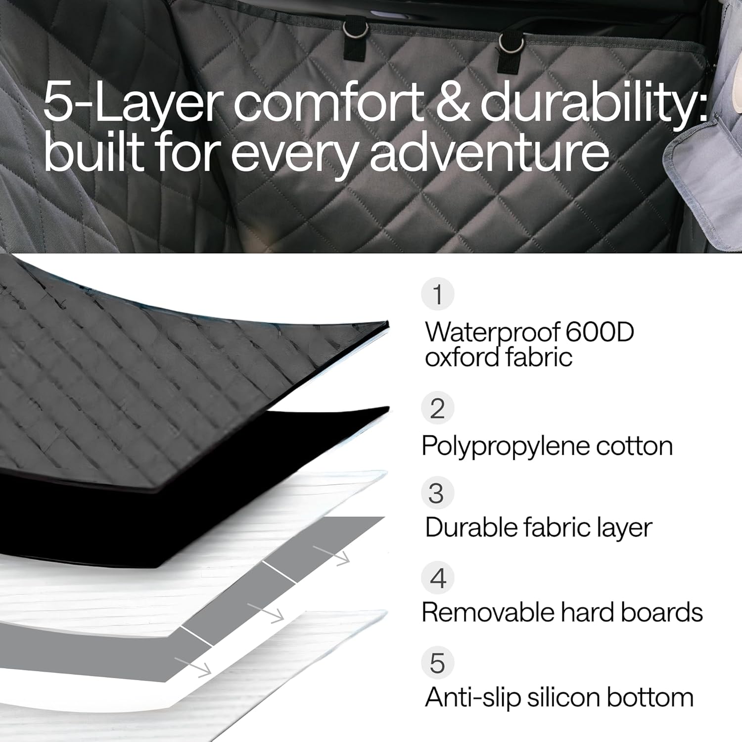 Waterproof Dog Car Seat Cover for Back Seat with Hard Bottom Inserts - Dog Hammock for Car, 600D, SUV, and Trucks - Pet Car Seat Covers - Backseat Extender for Dogs with 2 Storage Pockets, Mesh Window