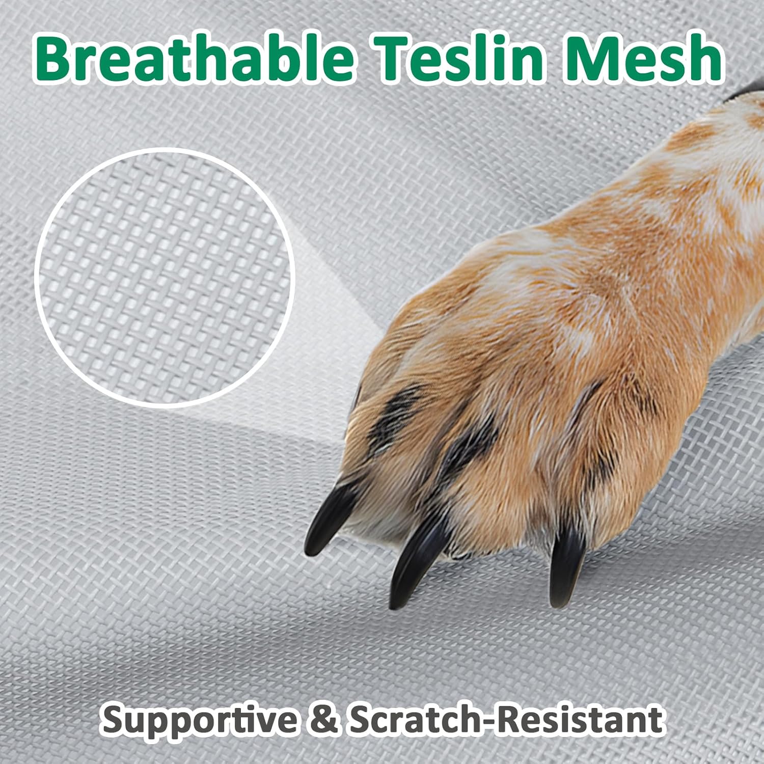 - BREATHABLE TESLIN MESH: This outdoor dog bed comes with breathable and durable Teslin mesh, provides airflow and firm support to relieve joint pressure. Our dog cot bed is suitable for dogs of all life stages, from puppy to the senior
