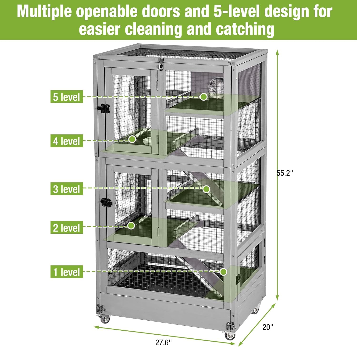 - Easy Access & Maintenance:featuring multiple large doors and a removable bottom tray, cleaning is a breeze, and accessing your ferret for playtime is effortless.