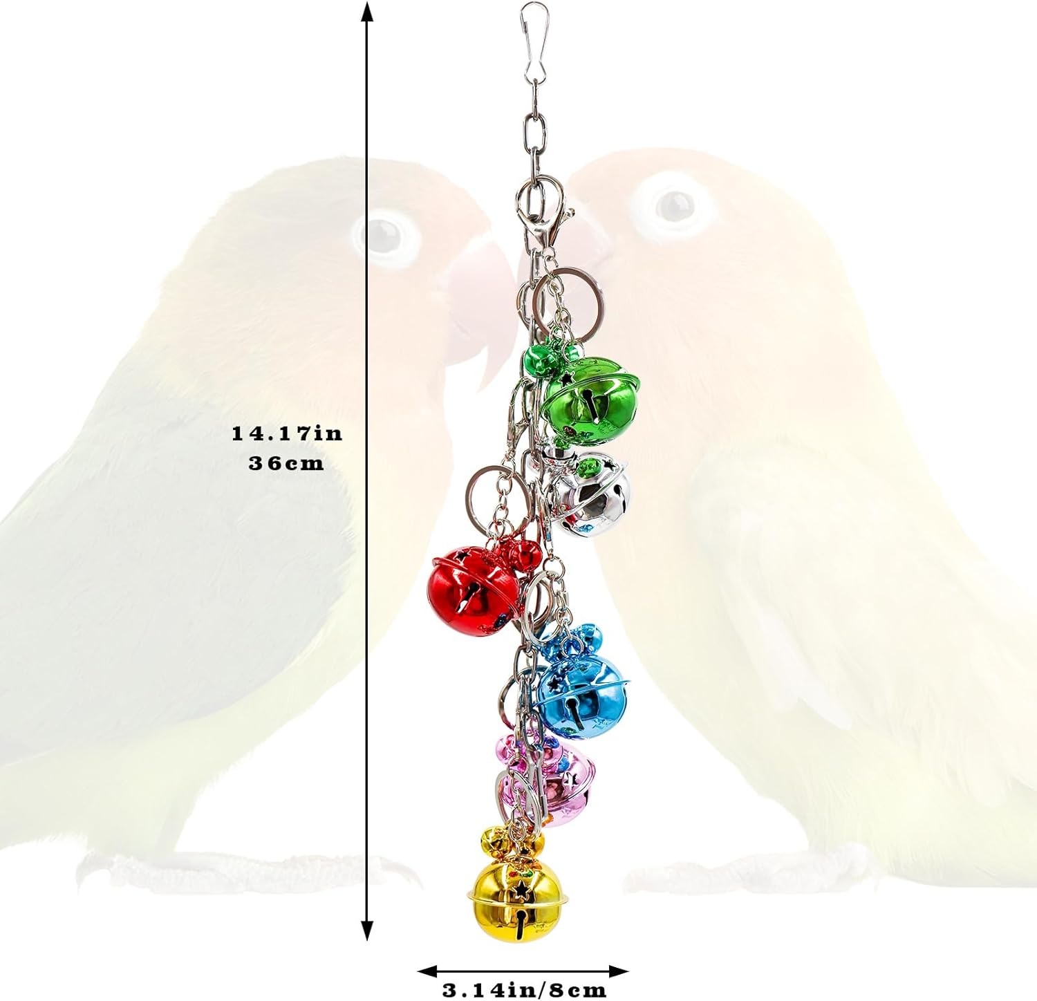 - Interactive and Decorative Design: Our bird bell toys feature colorful metal bells connected in series through stainless steel metal chains. These vibrant toys are perfect for hanging in bird cages, providing entertainment and a visually appealing decoration that adds a splash of color to your birdβs environment.