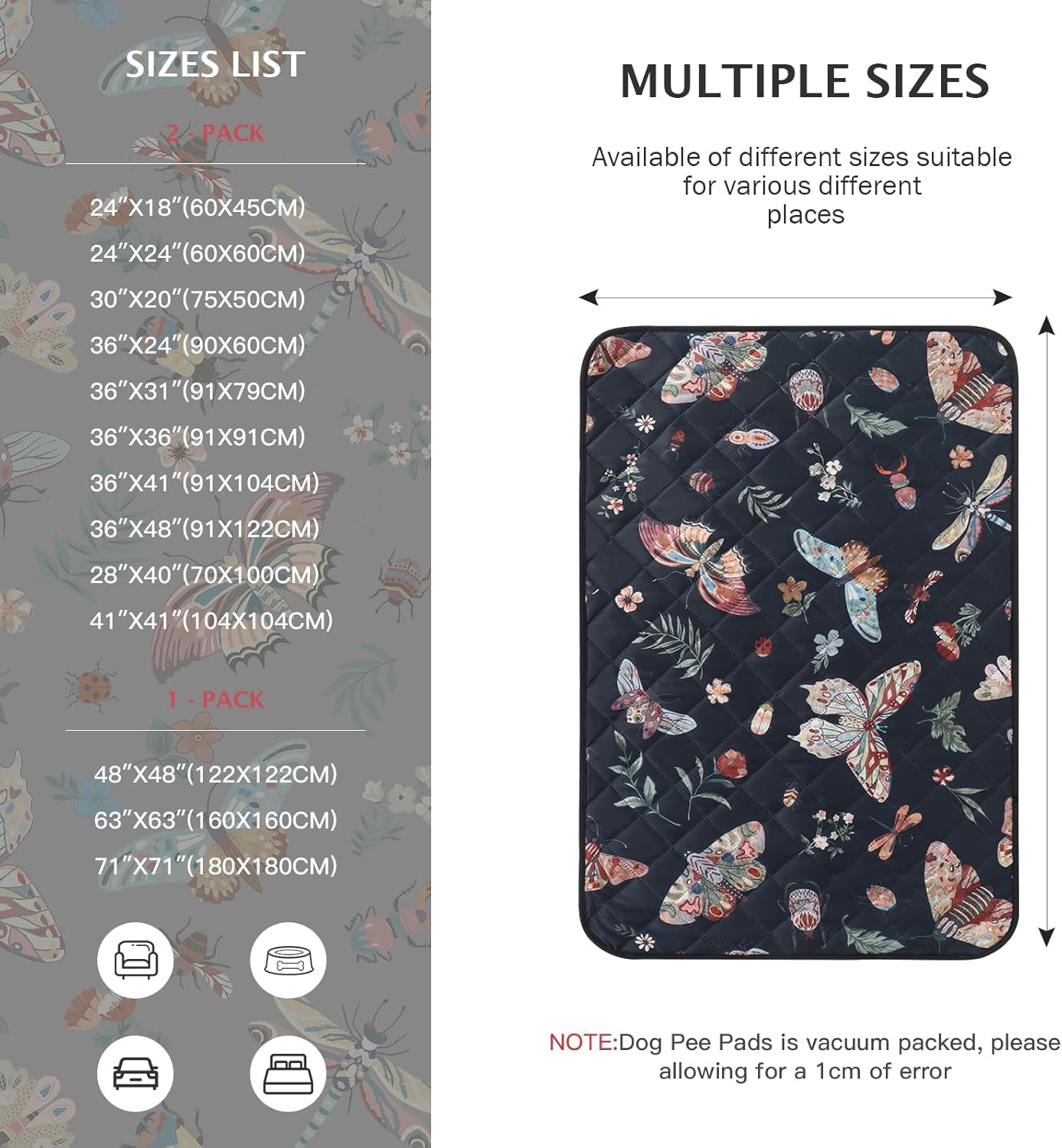IEUUMLER Washable Pee Pads for Dogs, 1 Pack Insect Pattern Reusable Waterproof Puppy Potty Pads, Non-Slip Absorbent Pet Training Pads for Playpen Crate Bed EU014