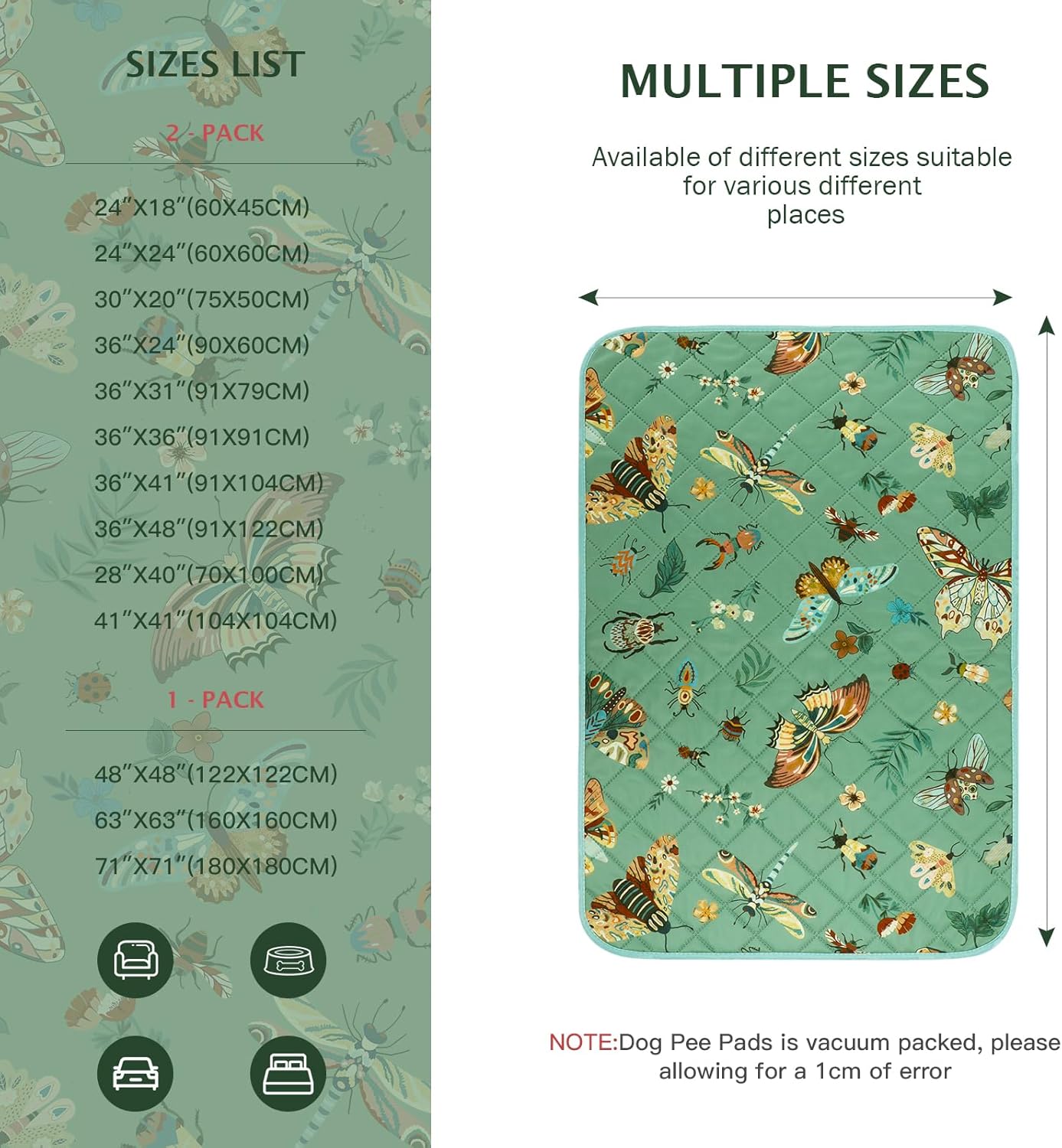 IEUUMLER Washable Pee Pads for Dogs, 1 Pack Insect Pattern Reusable Waterproof Puppy Potty Pads, Non-Slip Absorbent Pet Training Pads for Playpen Crate Bed EU014