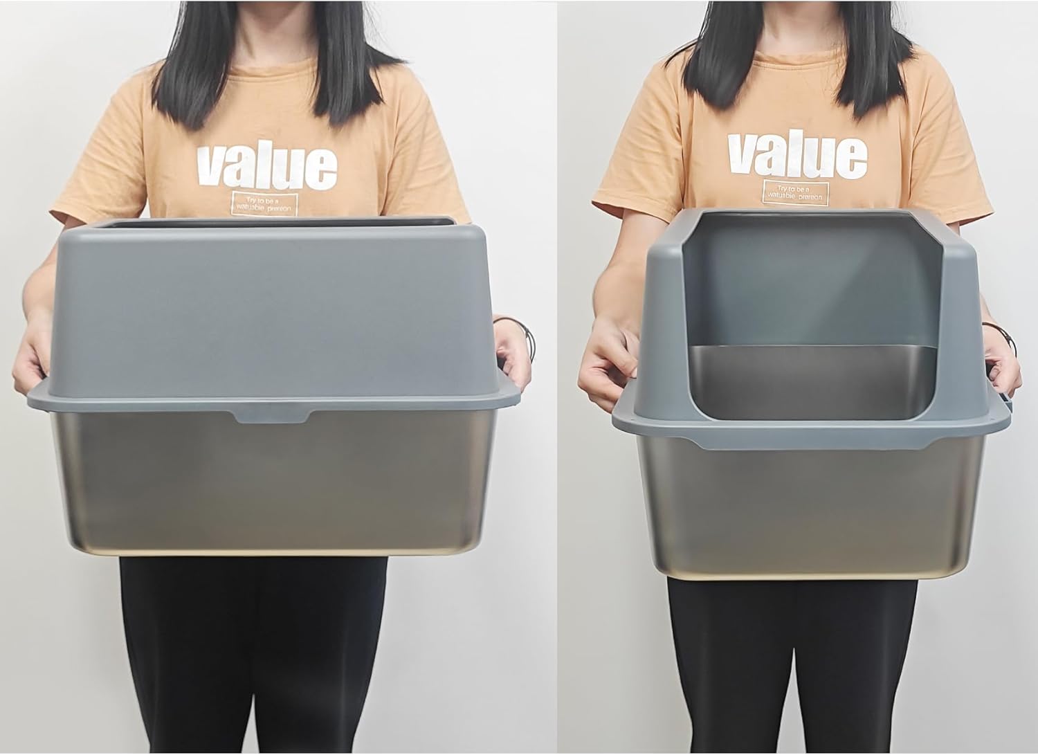 - Sturdy Stainless Steel MaterialοΌStainless steel cat litter box with lid is made of high quality stainless steel metal, which is durable and has a long service life. Don't need to replace the steel cat litter box frequently. The stainless steel litter pan also features odorless, non-stick bottom, non-slip, no residual stains and smooth surface.