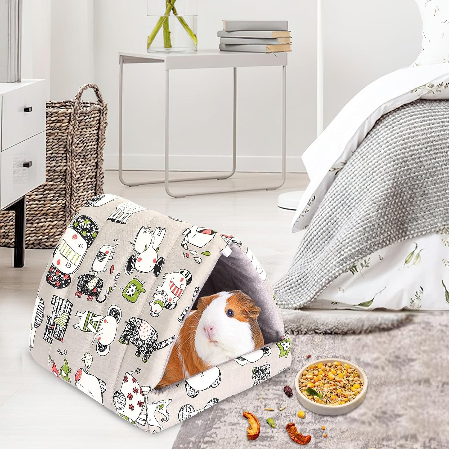 - Warm and Comfortable: The Guinea pig bed house is equipped with a detachable pee pad inside, and the non-slip bottom ensures hamster nest stays in place. With ultra soft fabric, your furry children will feel comfortable and warm in the small Guinea pig bed. Suitable for small animals such as hamsters, rats, chinchillas, ferrets, Guinea pigs, dwarf rabbits, etc