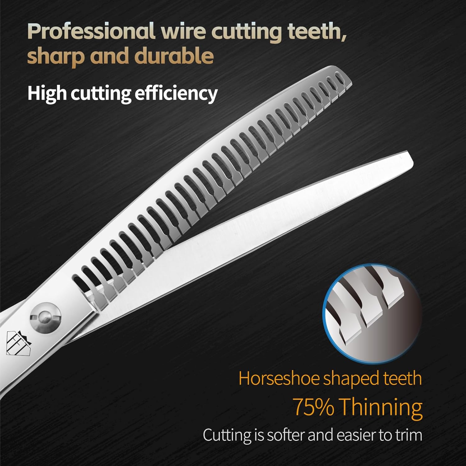 FENICE Professional Pet Grooming Scissors, JP440C Alloy Steel, Curved Chunker with Horseshoe Teeth, 75% Thinning (6.5")