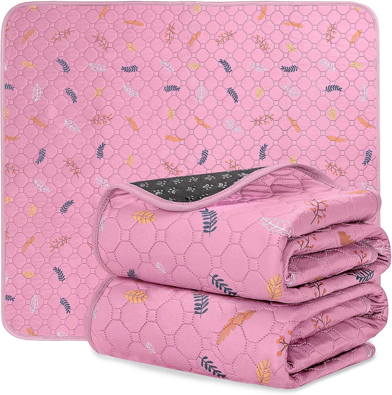 Sunheir Washable Pee Pads for Dogs 2-Pack Reusable Puppy Pads Pet Training Pads, Waterproof Dog Pee Pads for Crate, Whelping Pad, Non-Slip Protects Against Urine Leakage (Leaves - Pink, 18x24)
