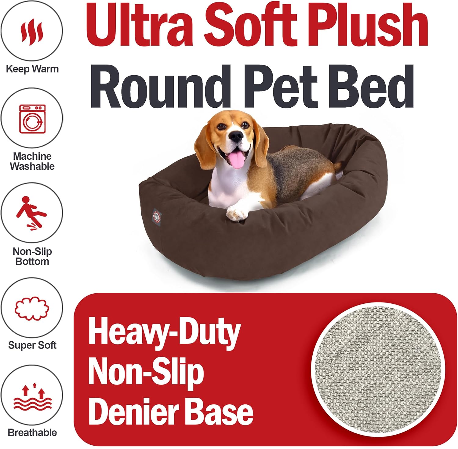 Majestic Pet 32 Inch Suede Calming Dog Bed Washable 32x23x7 (Inch) – Cozy Soft Round Donut Dog Bed with Spine Support for Dogs to Rest Their Head - Pet Bed Medium – Chocolate (2025)